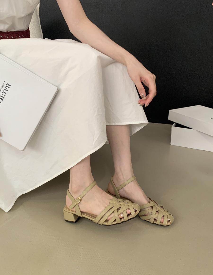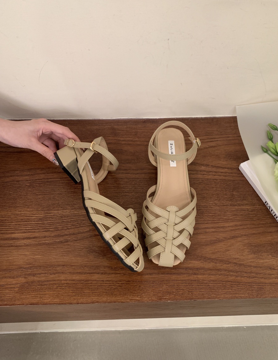 프랑스 여름 신상품 로마 신발 플랫 바닥 발가락 샌들 여성용 틈새 디자인 중공스토어 가기