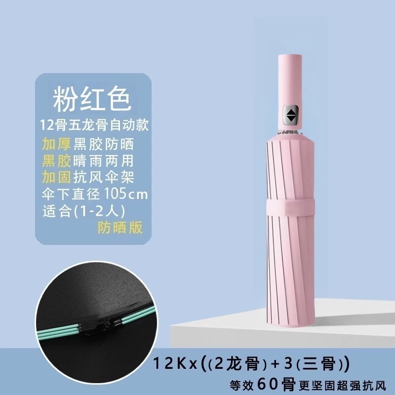 • 핑크색 [60개의 유리섬유 방풍 우산 갈비뼈, 확대 및 강화, 비가 오나 눈이 오나 사용 가능] 완전 자동