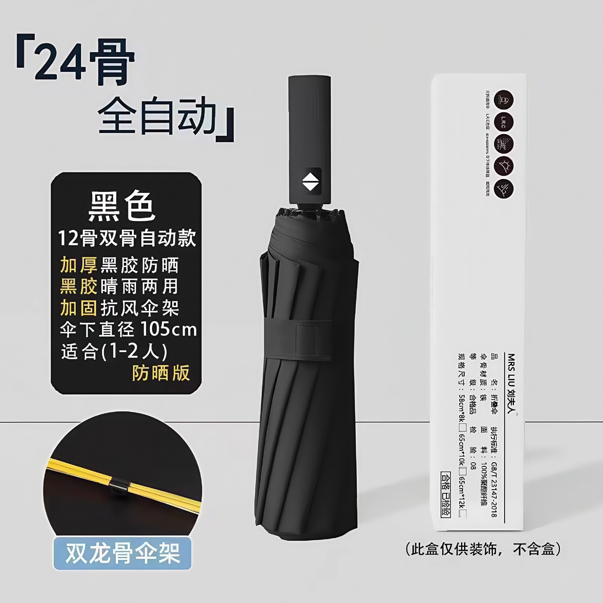 • 클래식 블랙 [24개의 유리 섬유 방풍 우산 갈비뼈, 확대 및 강화, 비가 오나 눈이 오나 사용 가능] 완전 자동