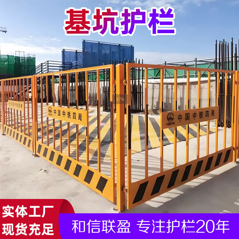 Hexin 기술 공터 건설 울타리 건설 현장 경고 가드 레일 안전 격리 이동식 가장자리 가드 레일 제조업체스토어 가기