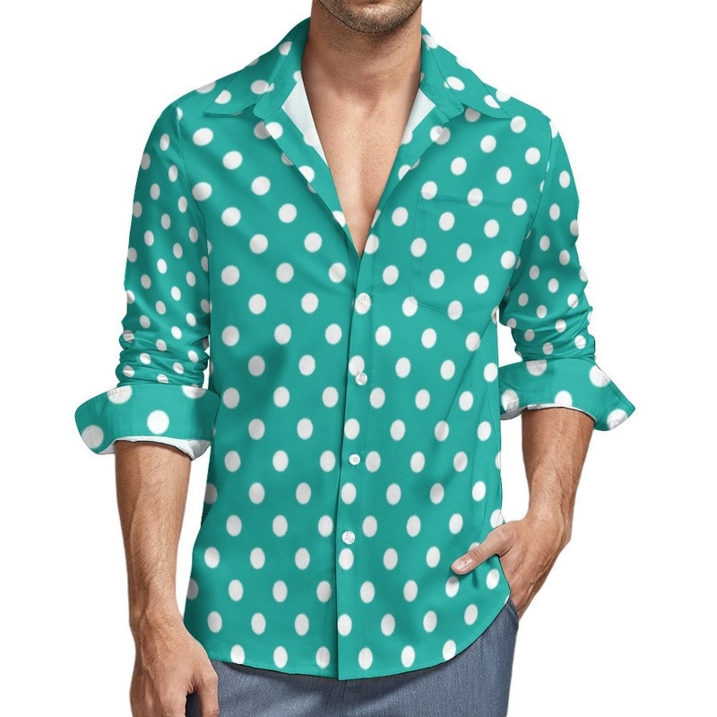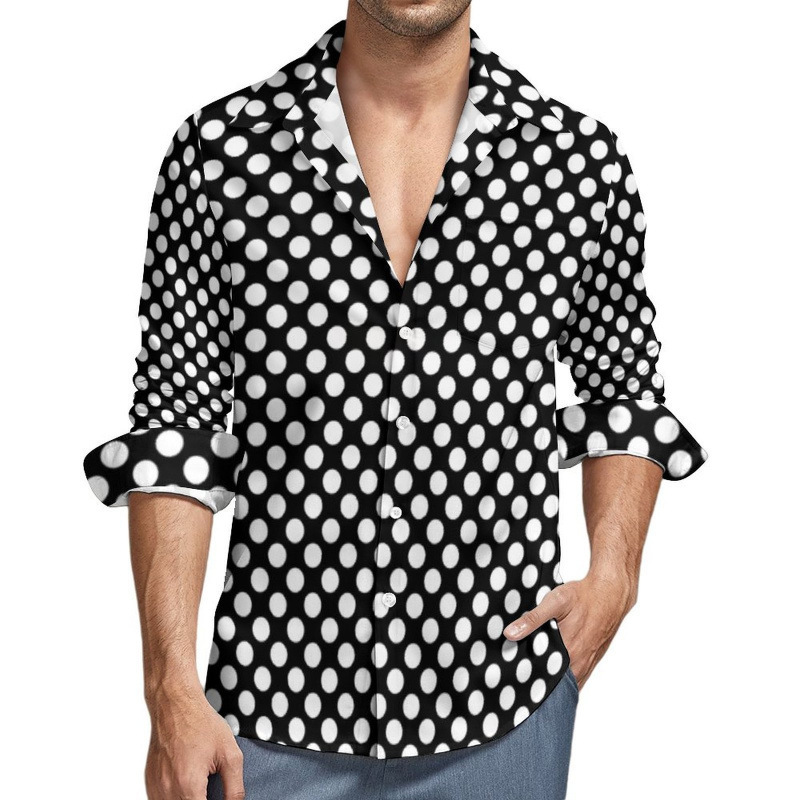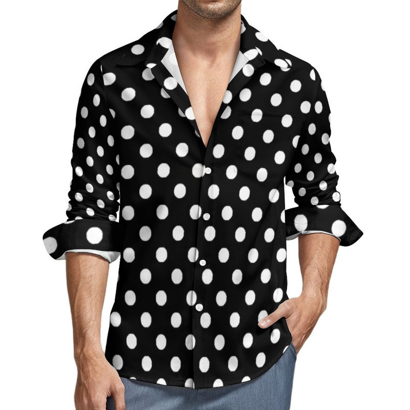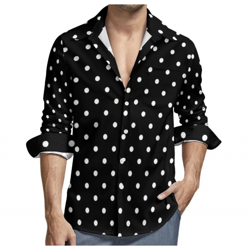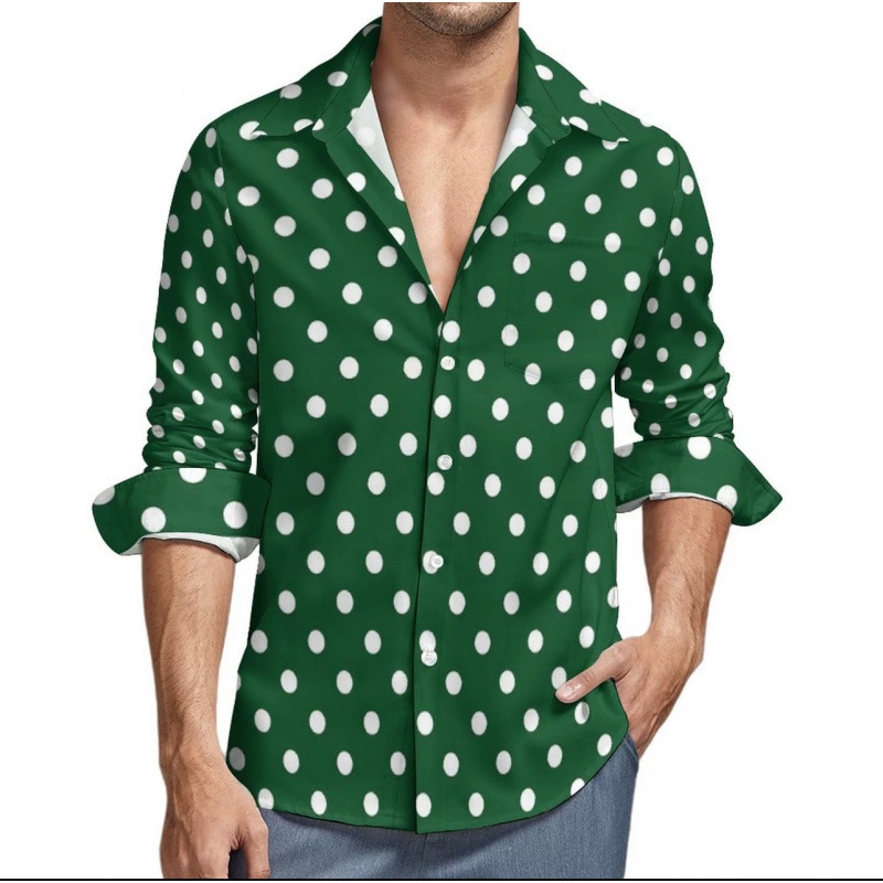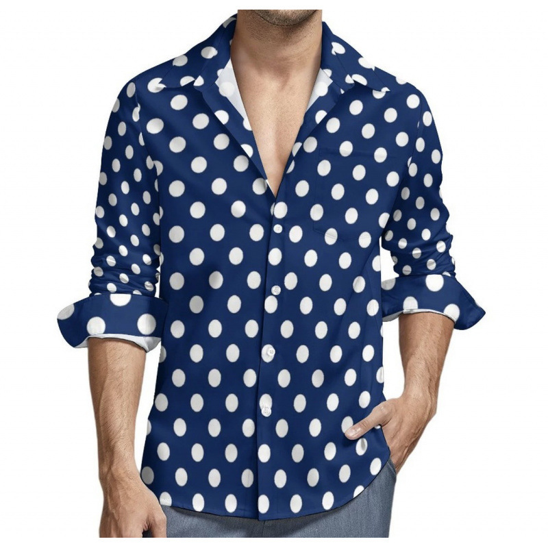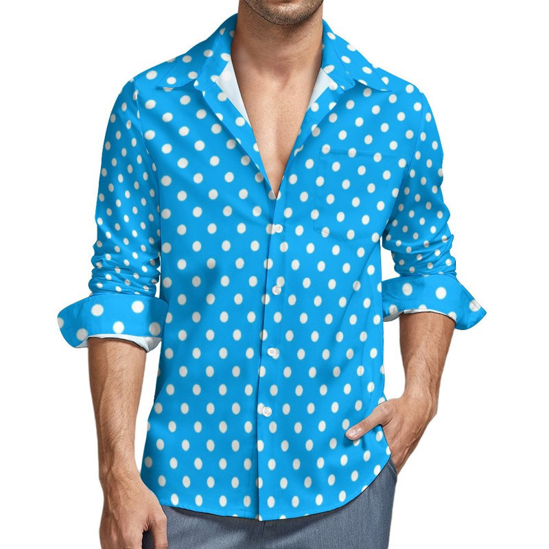 맞춤형 새 하와이 비치 셔츠 국경 간 대외 무역 남성용 긴팔 디지털 프린트 셔츠 폴카 도트