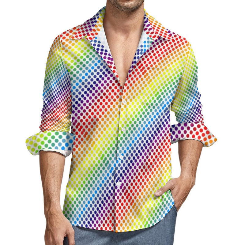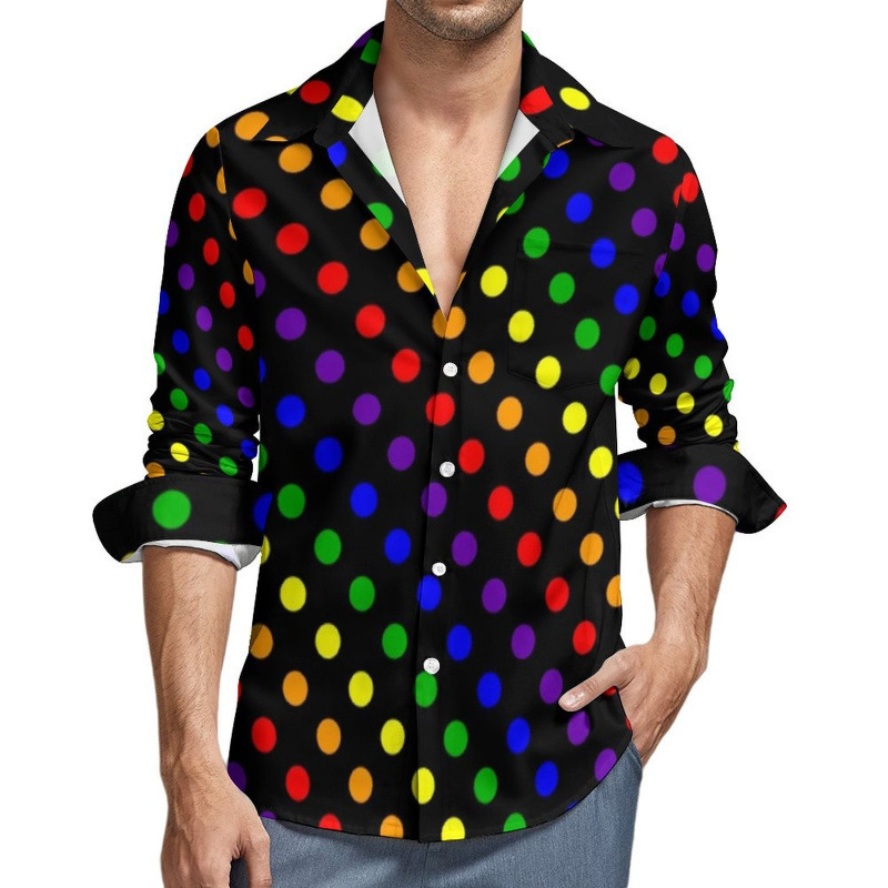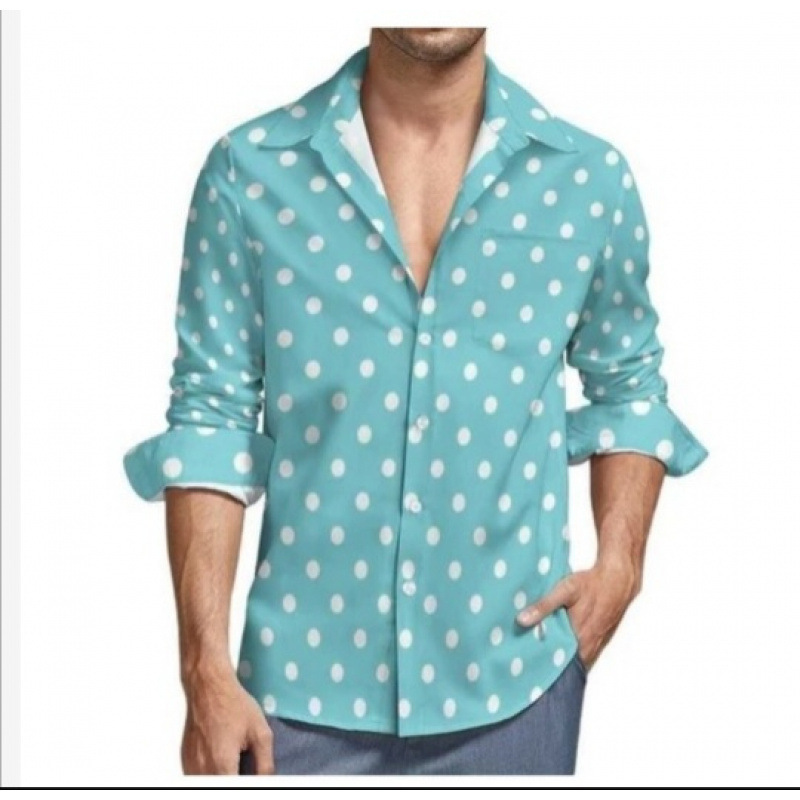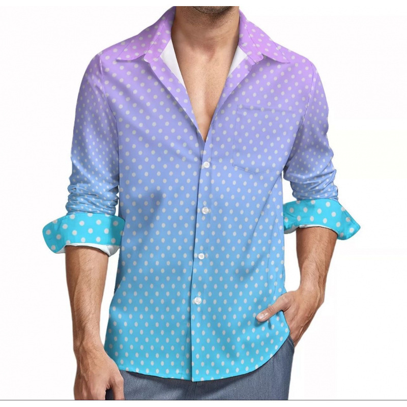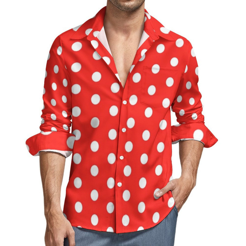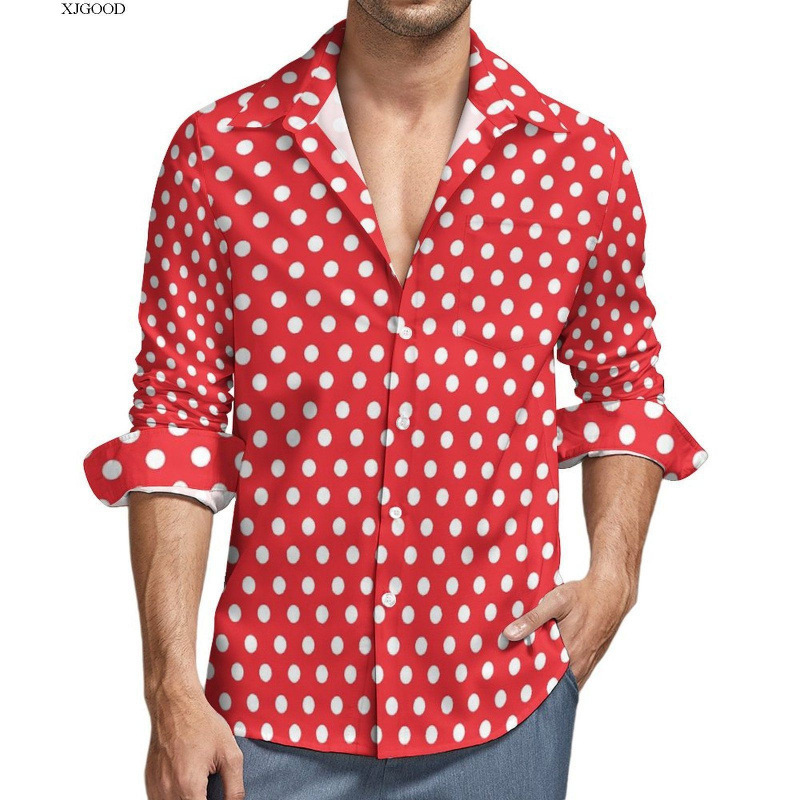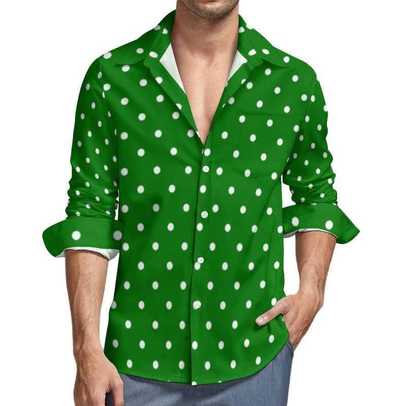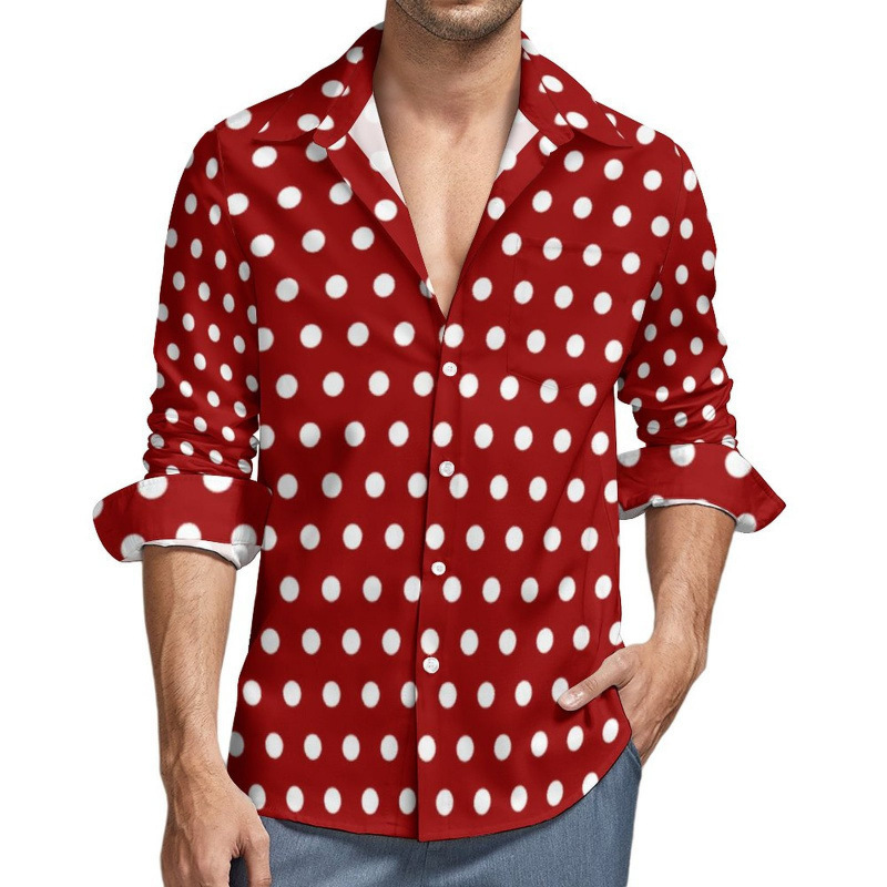 맞춤형 새 하와이 비치 셔츠 국경 간 대외 무역 남성용 긴팔 디지털 프린트 셔츠 폴카 도트
