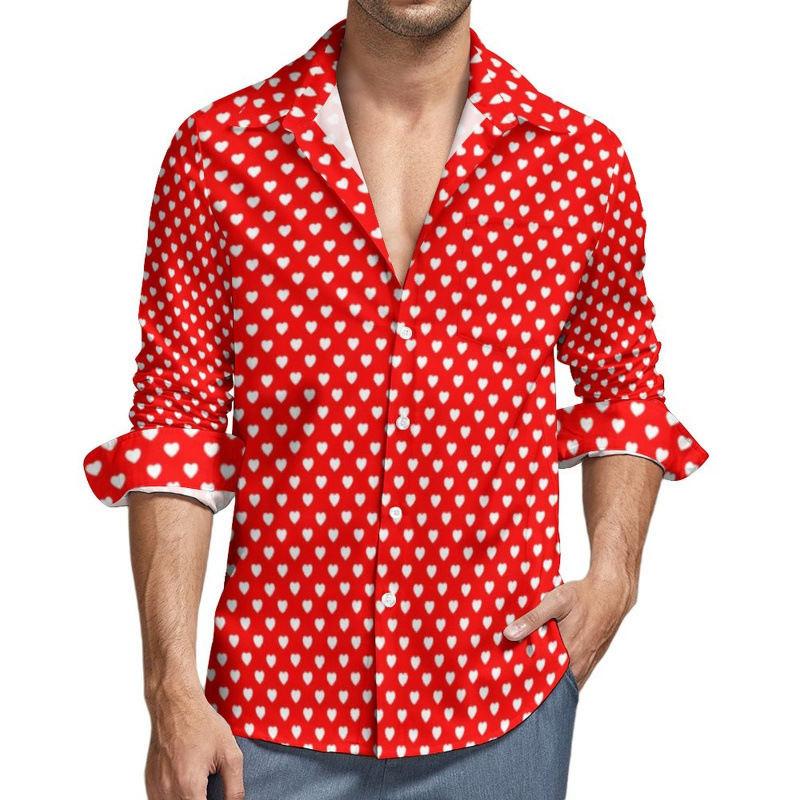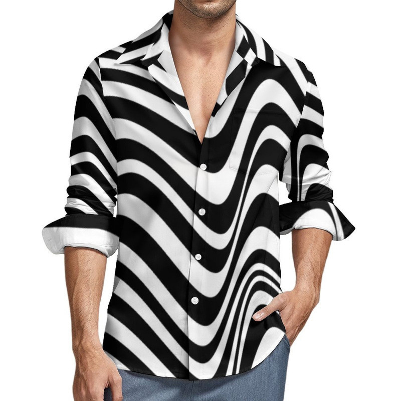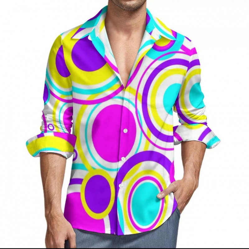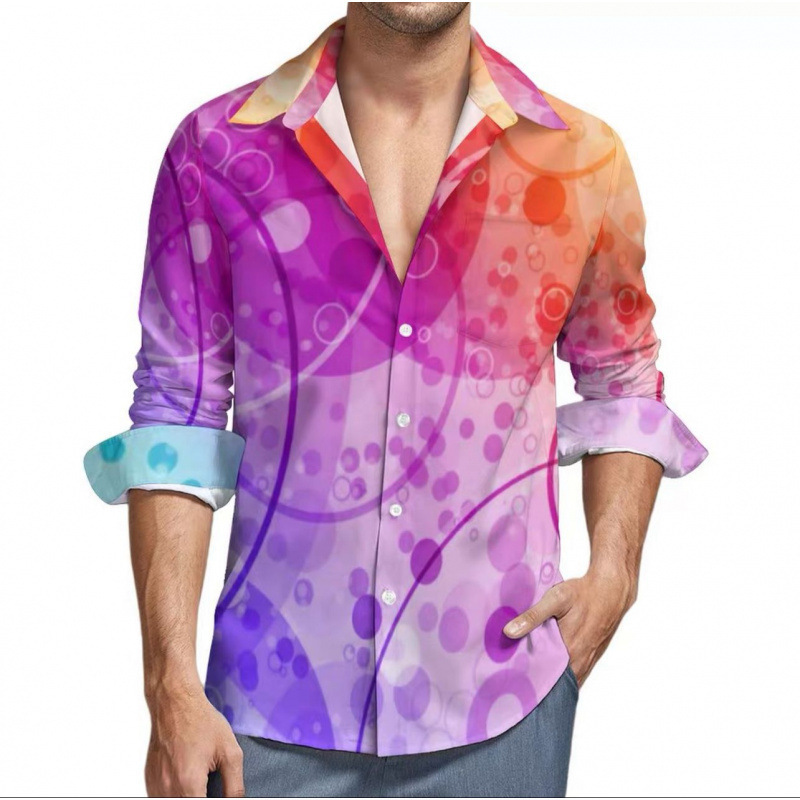 맞춤형 새 하와이 비치 셔츠 국경 간 대외 무역 남성용 긴팔 디지털 프린트 셔츠 폴카 도트스토어 가기