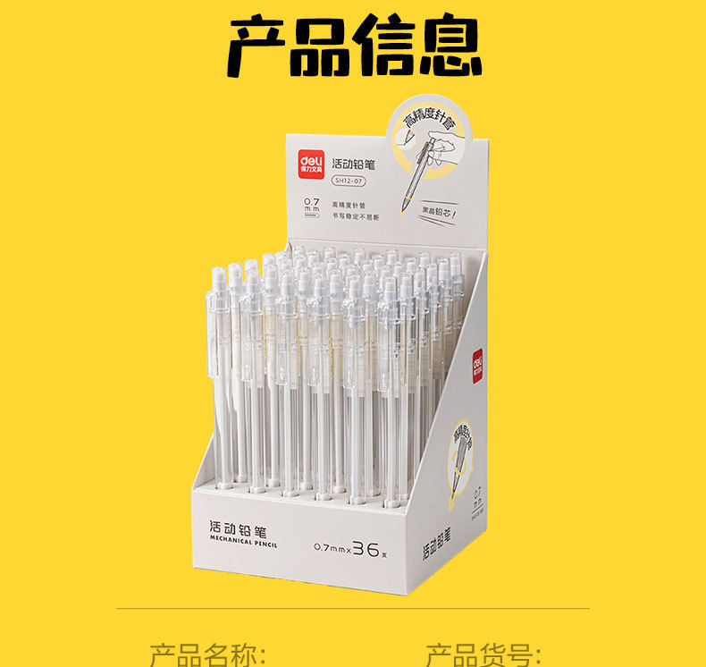 델리 SH12-07 학생들이 시험을 위해 쓰는 샤프펜슬 0.5mm/0.7mm 투명봉 자동연필스토어 가기