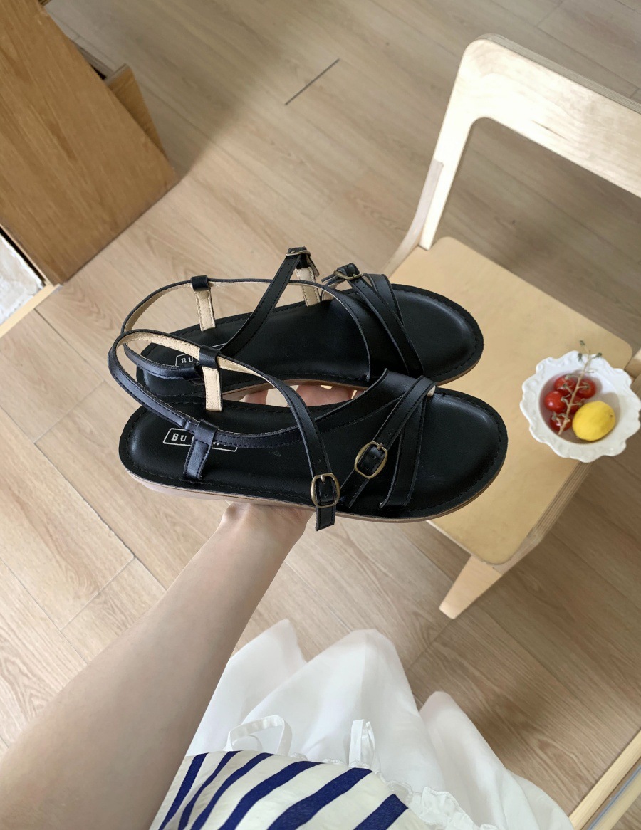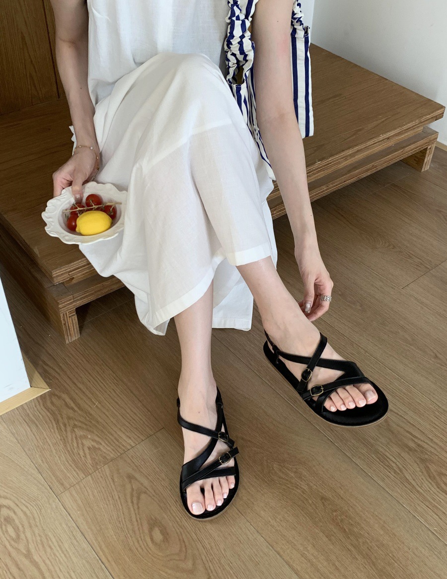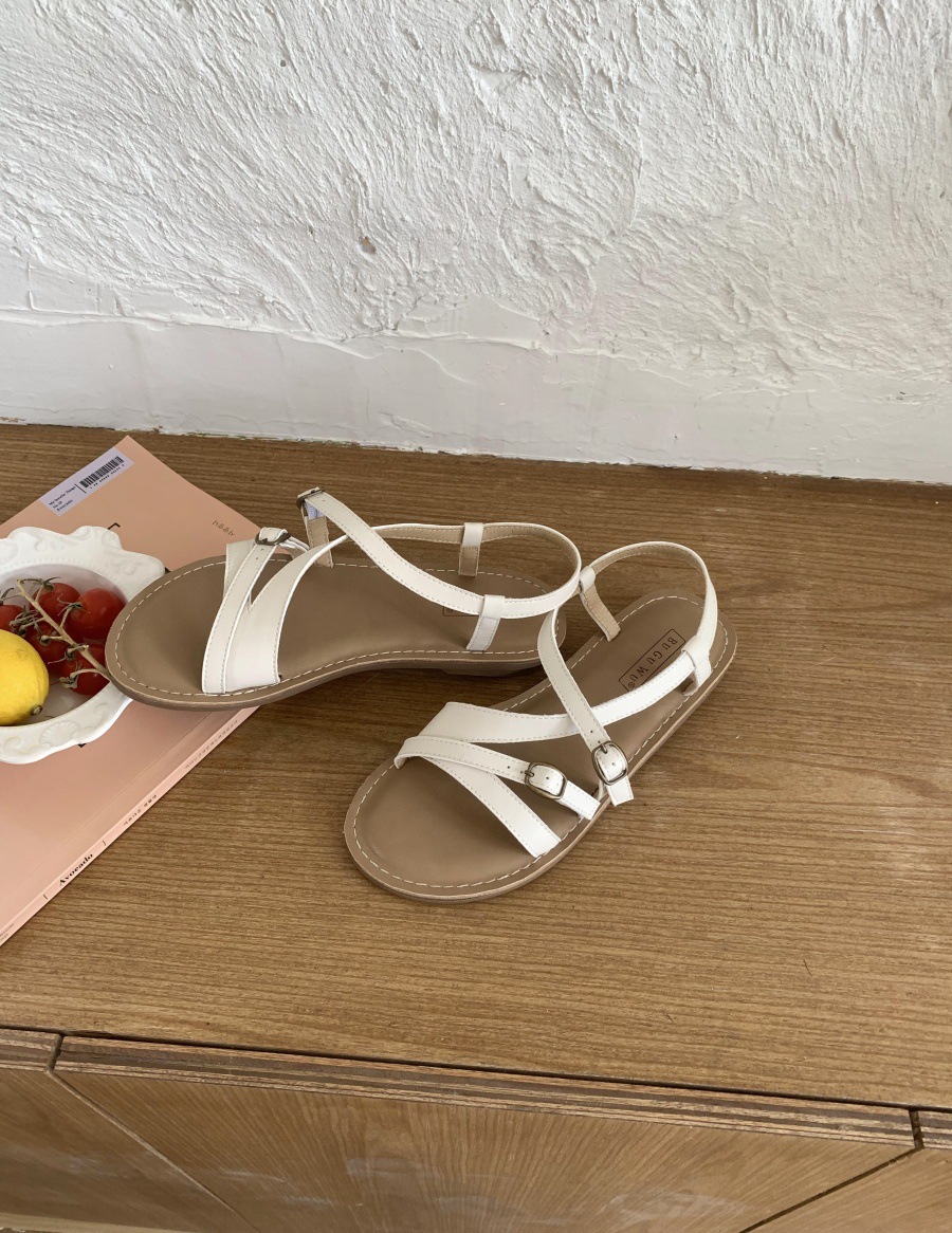 2025 새 버전 ~ 여성용 틈새 디자인 원 버튼 오픈 토 샌들, 다용도 여름 플랫 로마 신발스토어 가기