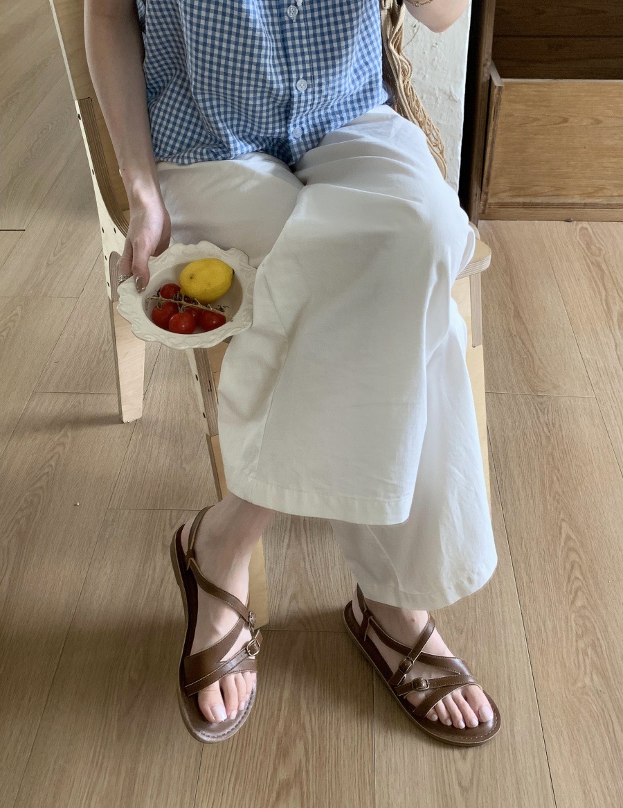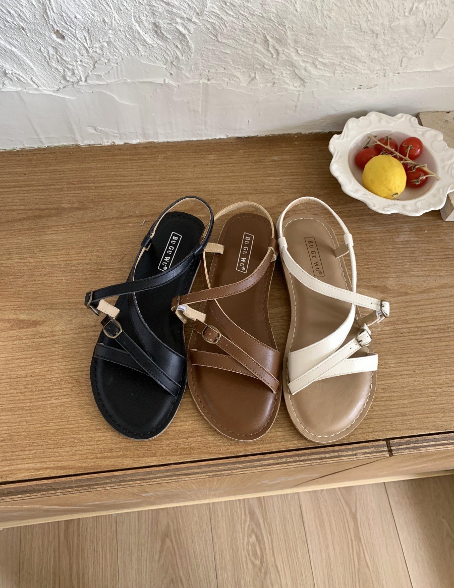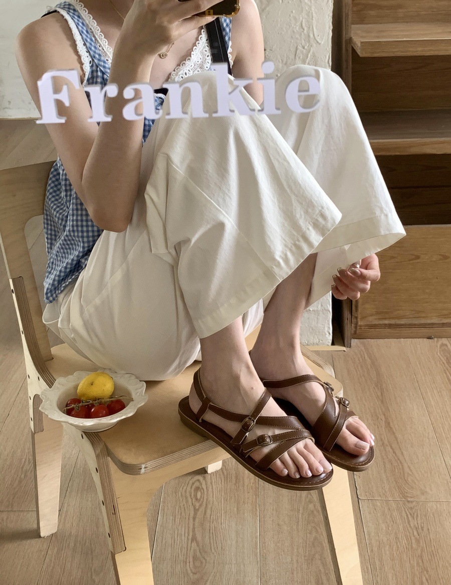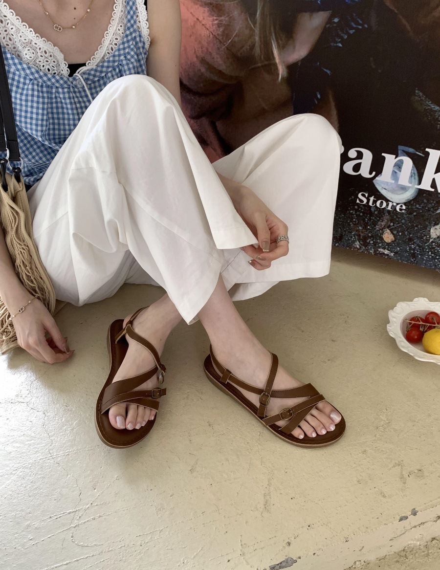 2025 새 버전 ~ 여성용 틈새 디자인 원 버튼 오픈 토 샌들, 다용도 여름 플랫 로마 신발스토어 가기
