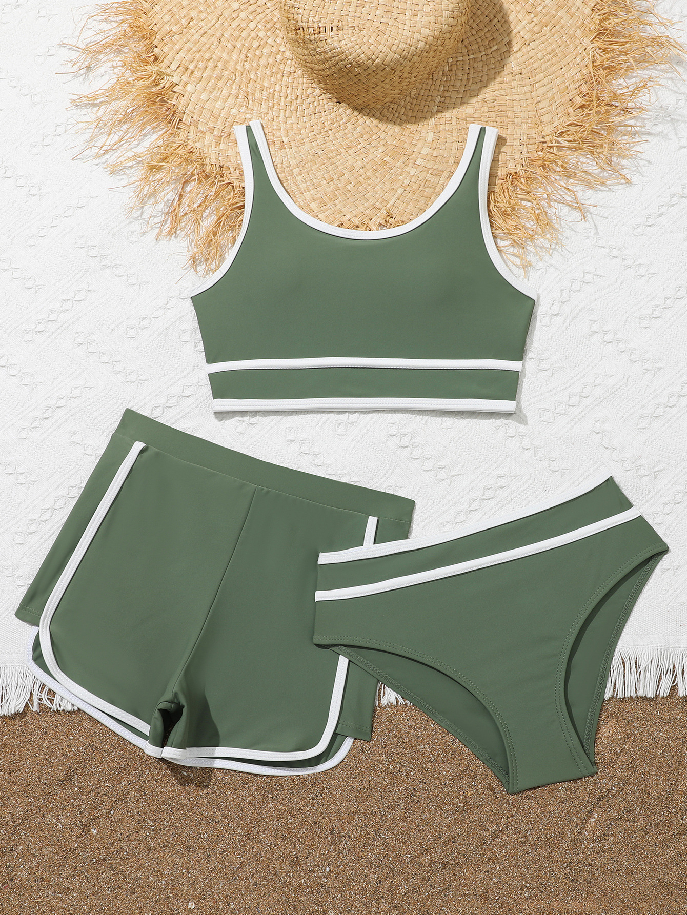 Amazon AliExpress 크로스보더 스플릿 3피스 수영복 비치 수영 어깨끈 조절 컵 편안하고 아름답고 귀여운
