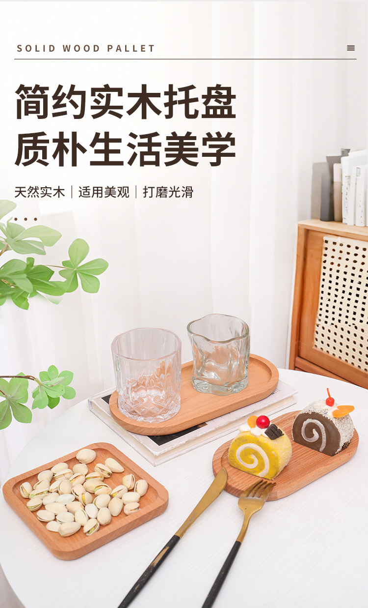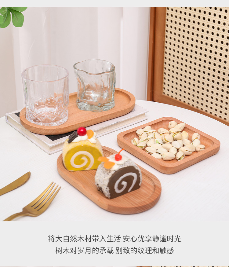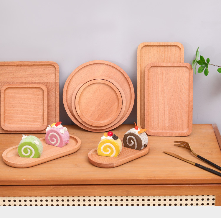 일본 단단한 나무 트레이 ins 직사각형 저장 원형 접시 크리 에이 티브 과일 접시 아침 식사 너도밤 나무 접시 나무 스낵 접시