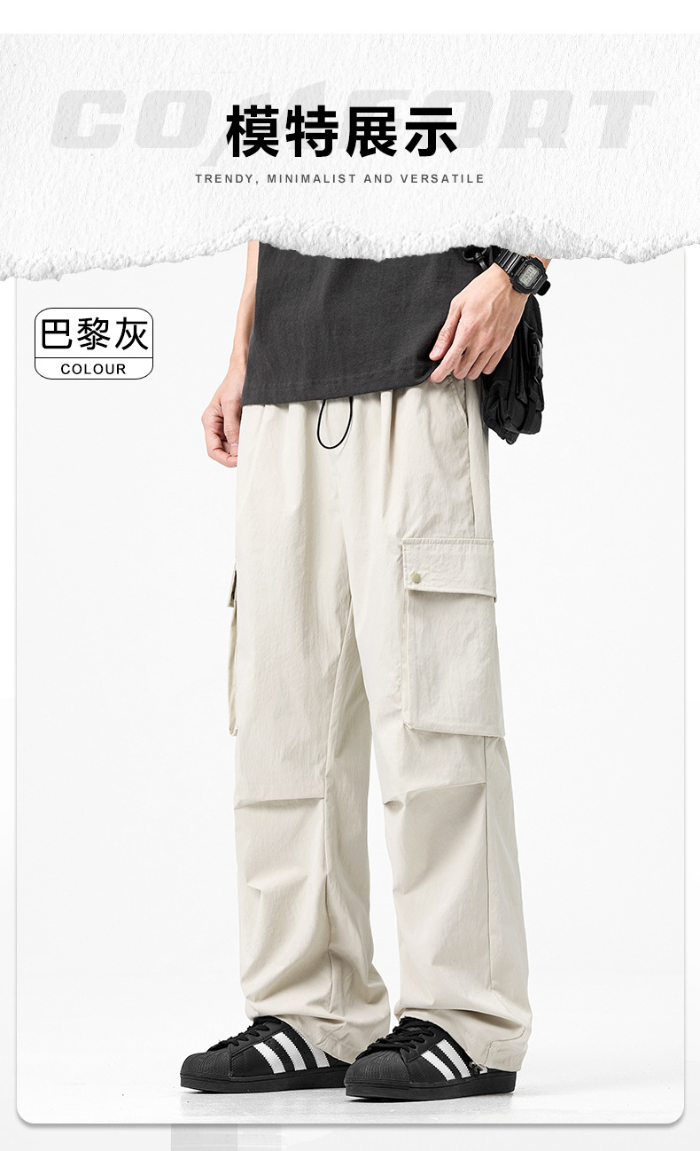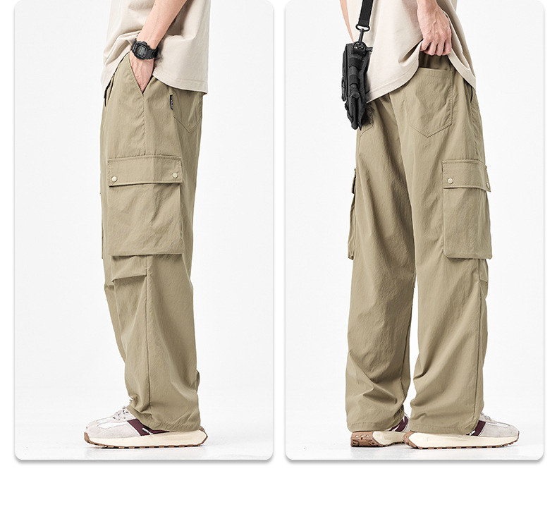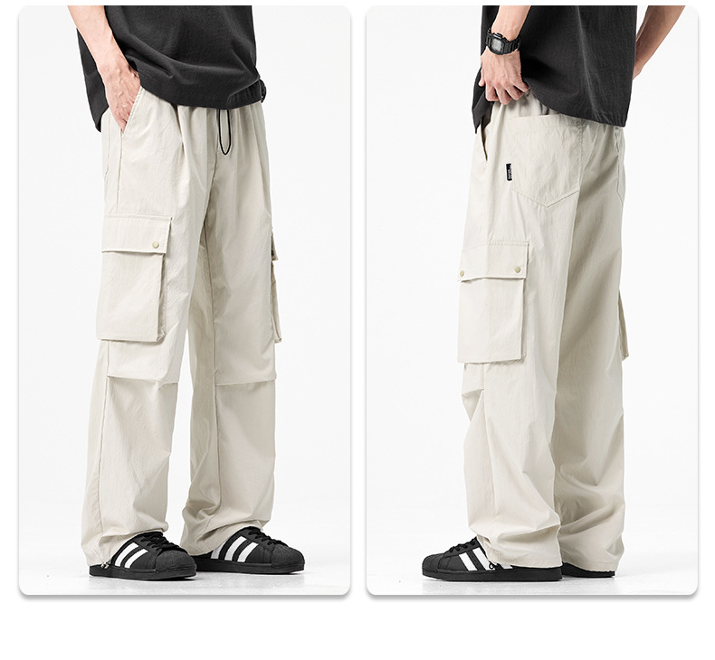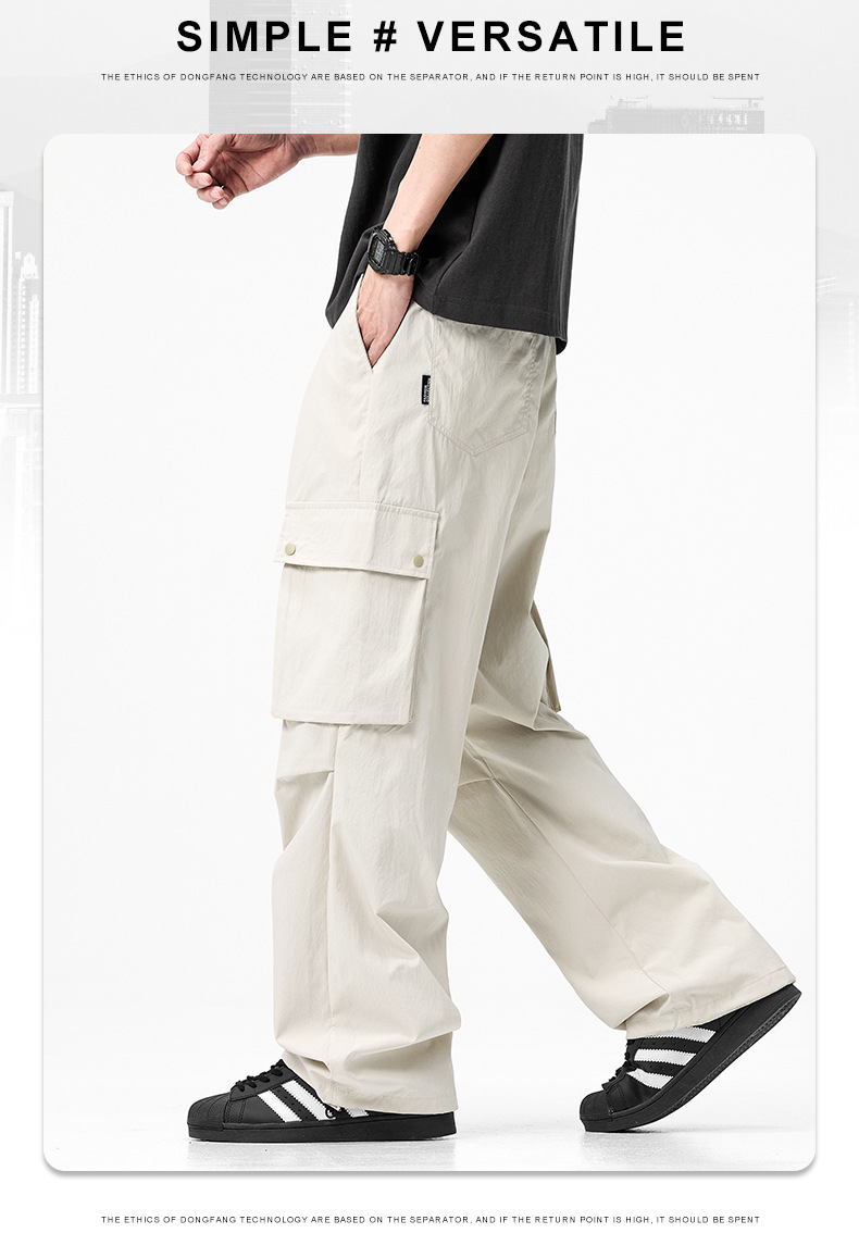남성용 여름 야외 작업복, 속건성 통기성 캐주얼 바지, 루즈한 스트레이트 등산 스포츠 낙하산 바지, 얇은 스타일스토어 가기