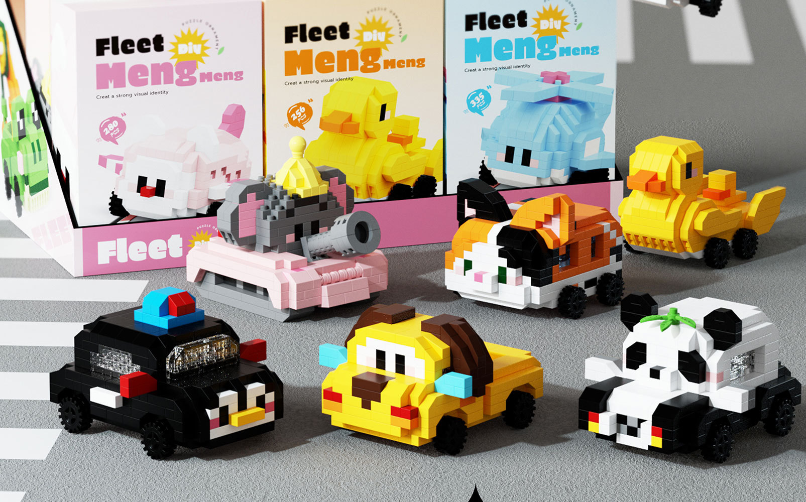 차오레창 7429-7437 귀여운 자동차 팀 시리즈 마이크로 입자 조립 어린이 교육용 블록 장난감 선물스토어 가기