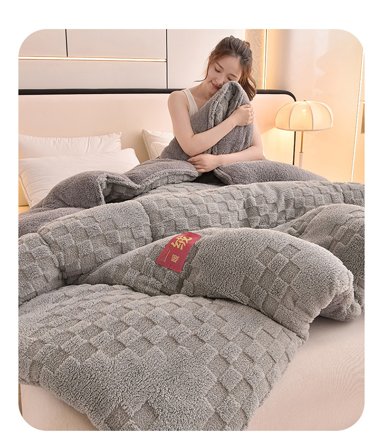 두꺼운 양면 벨벳 이불 태피터 양고기 벨벳 따뜻한 벨벳 겨울 싱글 및 더블 기숙사 이불 코어 2025 새로운 스타일