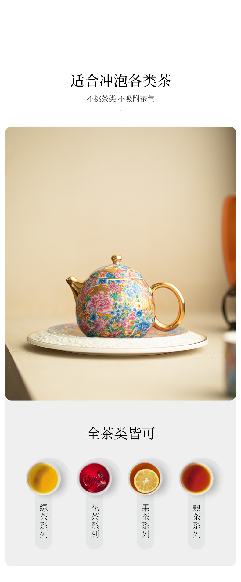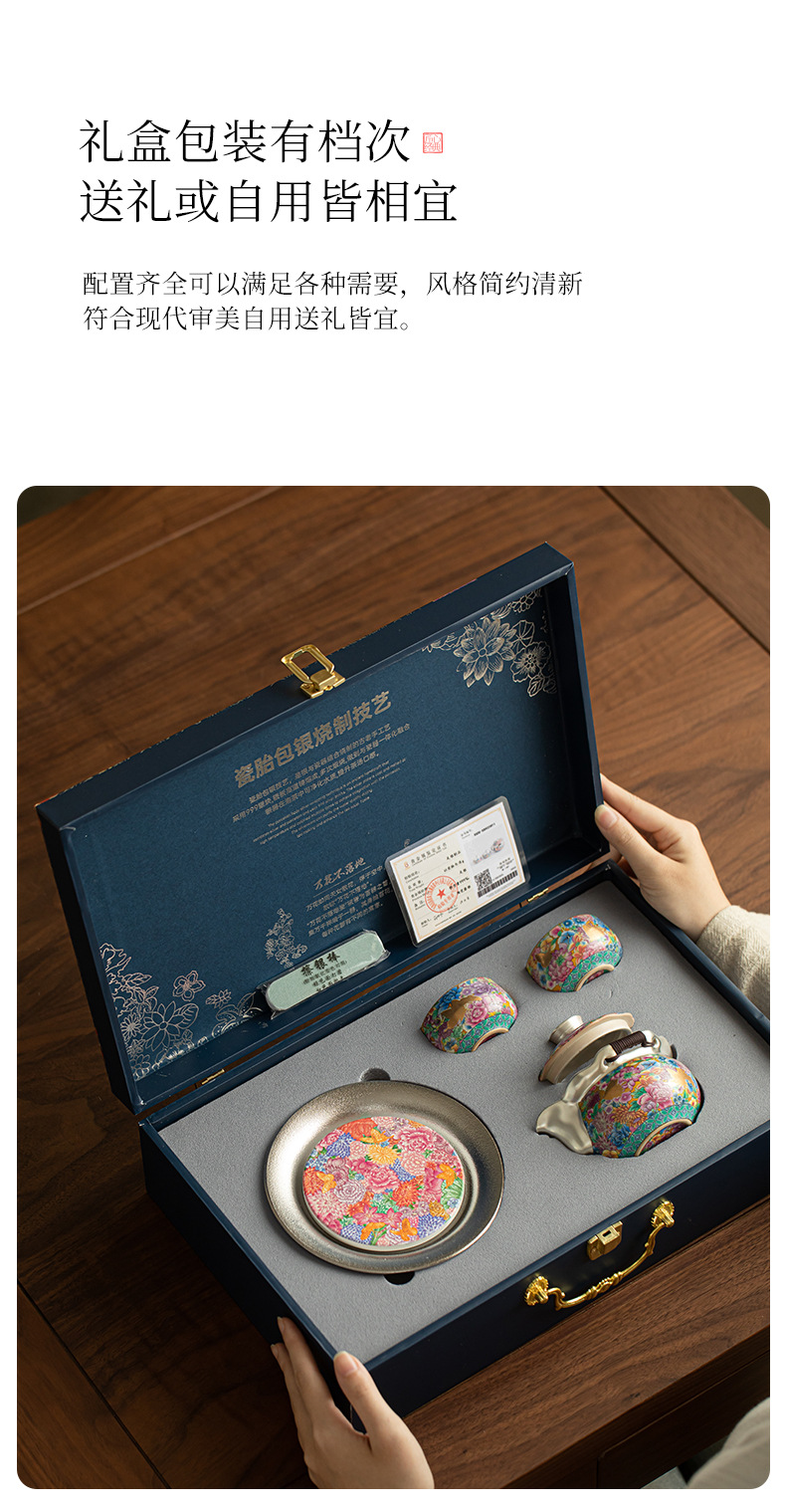 문화 및 창의적 자금성 에나멜 금색 주전자와 찻잔 선물 상자 세트 세라믹 차 세트 1개의 주전자와 2개의 컵 휴일 선물 세트스토어 가기