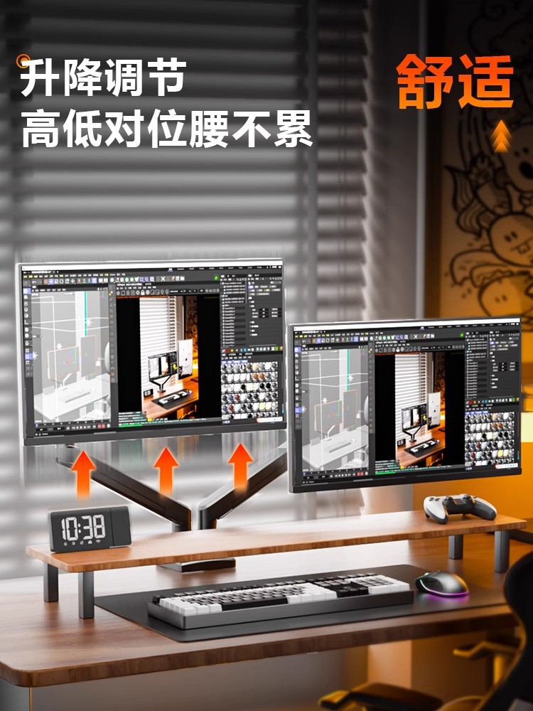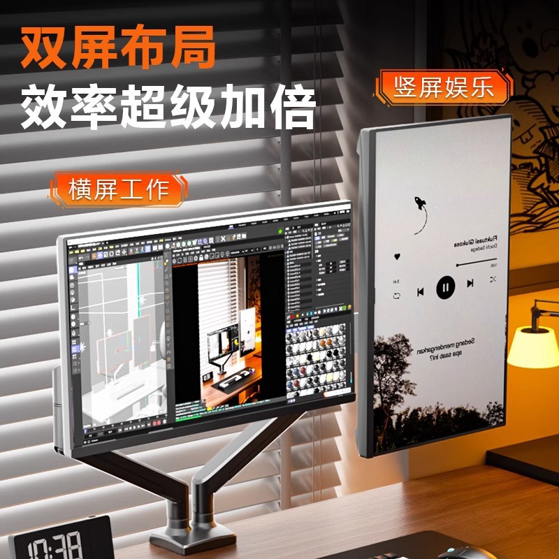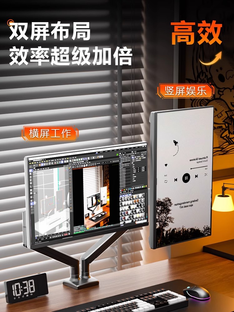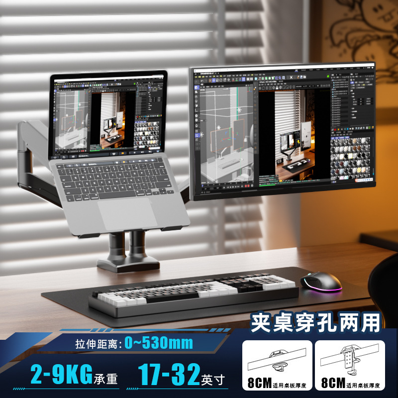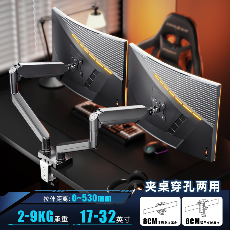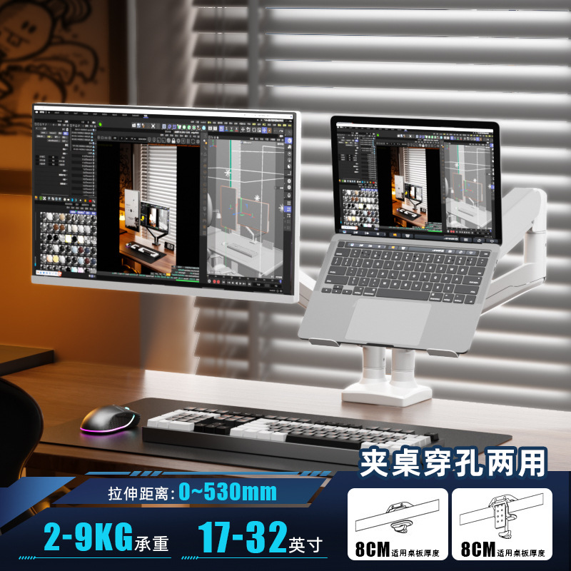 듀얼 스크린 모니터 스탠드, 1대2 컴퓨터 데스크탑 높이 조절, 펀치 없는 노트북 액세서리, 투인원스토어 가기