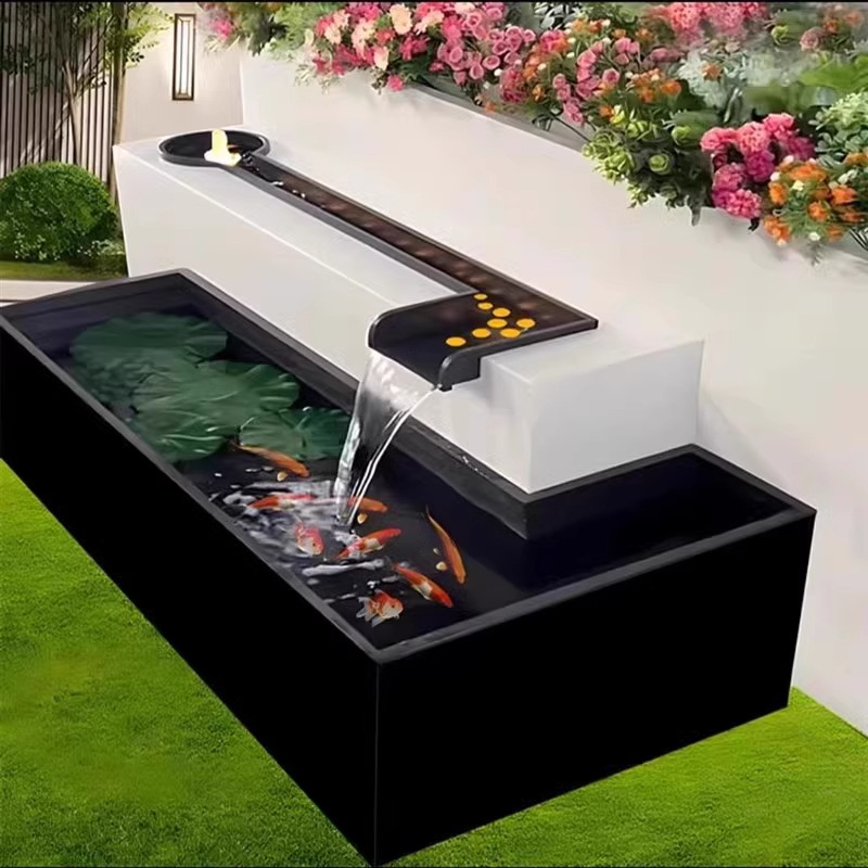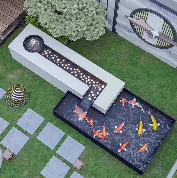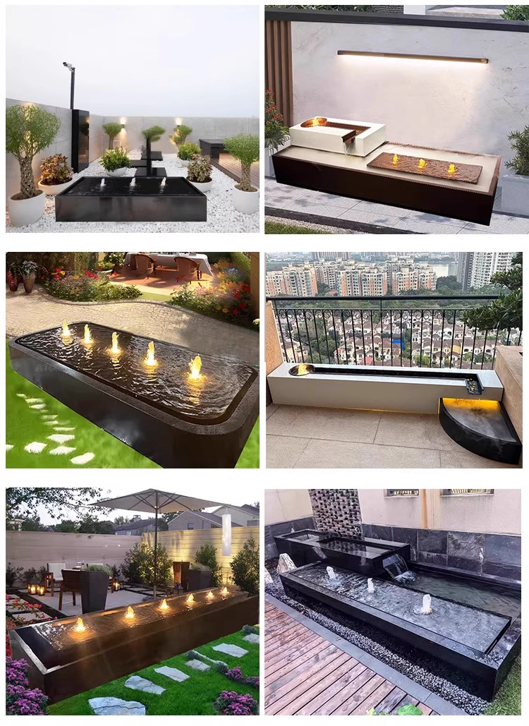 304 스테인레스 스틸 워터 풍경 안뜰 흐르는 물 장식품 수영장 완제품 물고기 연못 분수 분수 계단식 폭포 수영장 장식품