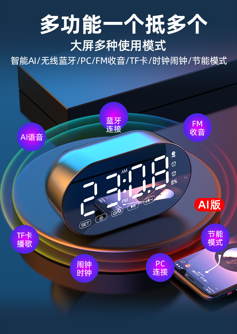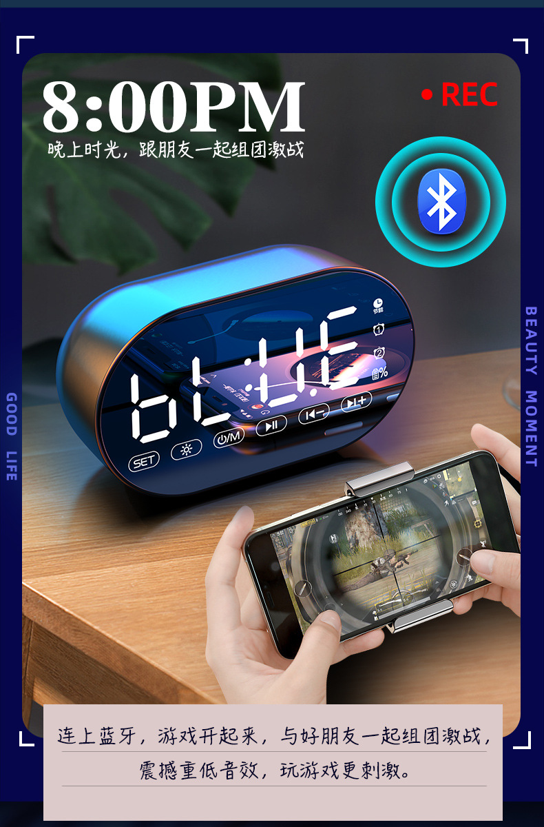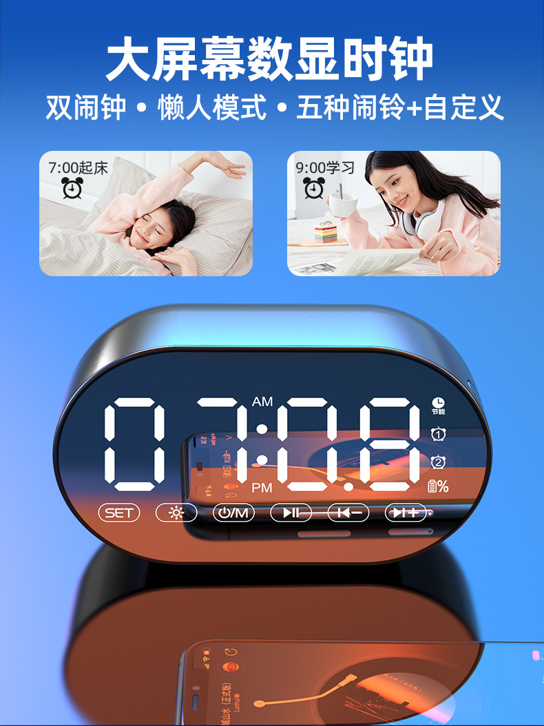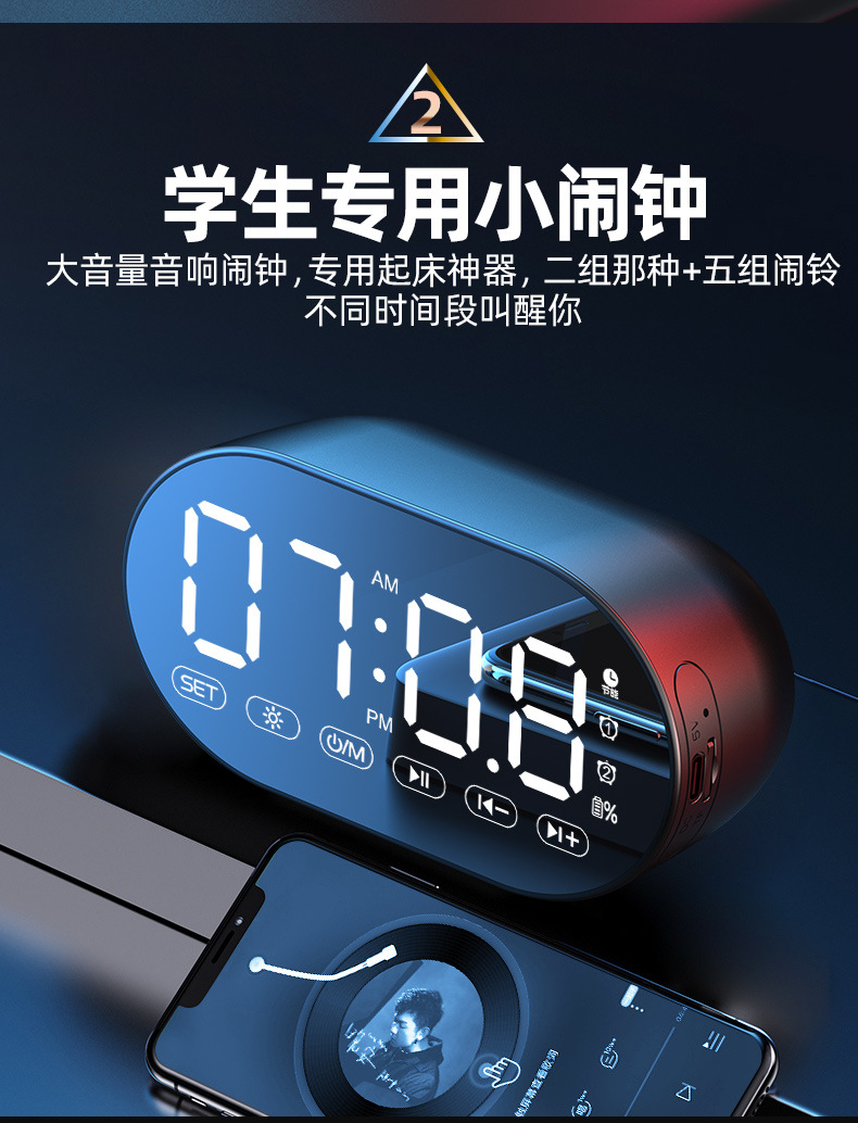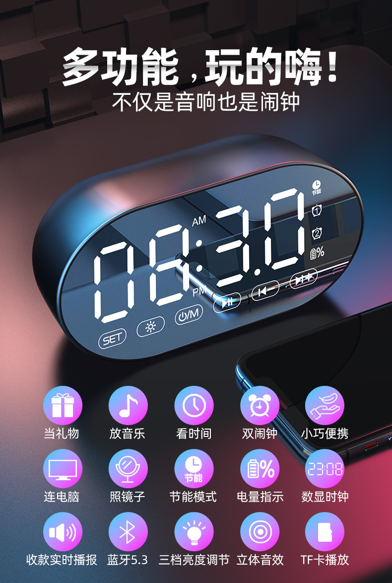 무선 다기능 학생용 알람시계 블루투스 스피커 대용량 소리로 깨우는 미니 서브우퍼