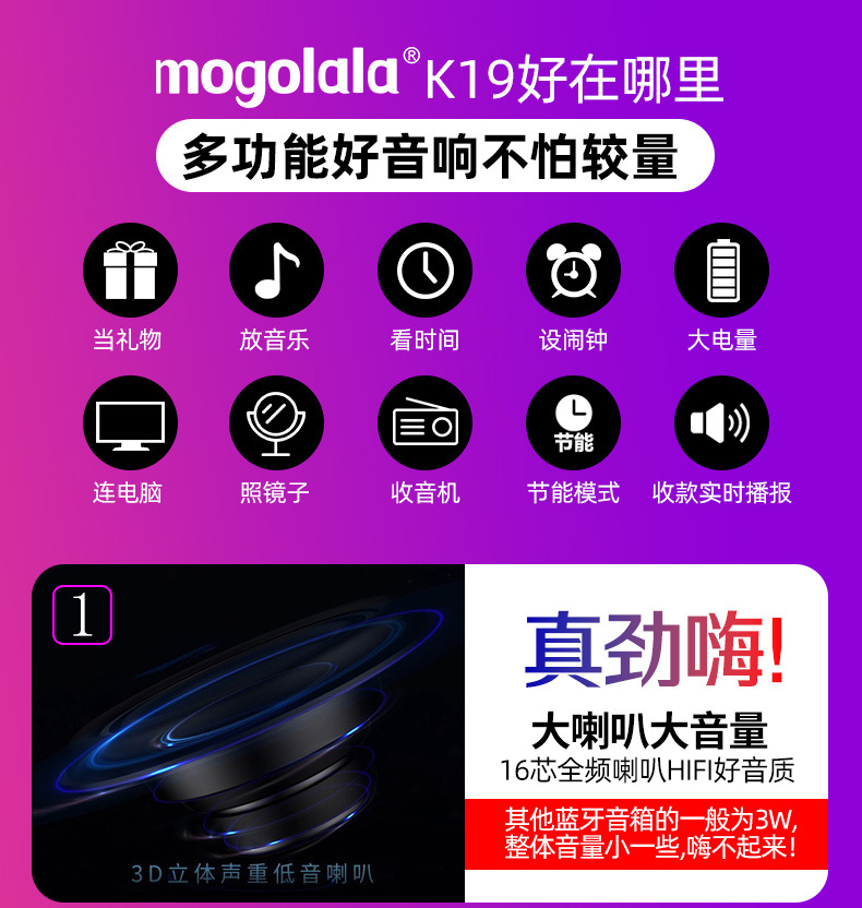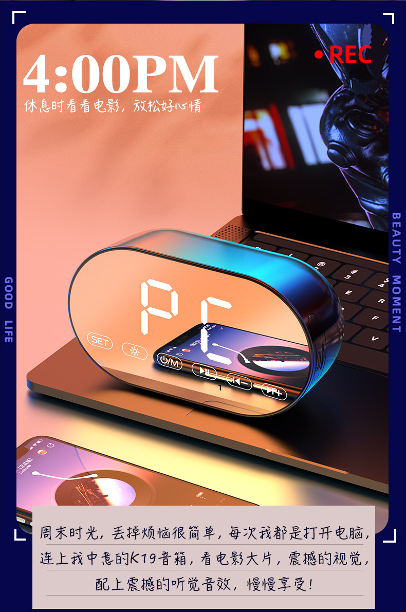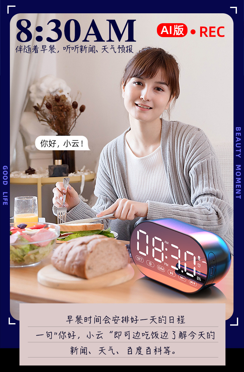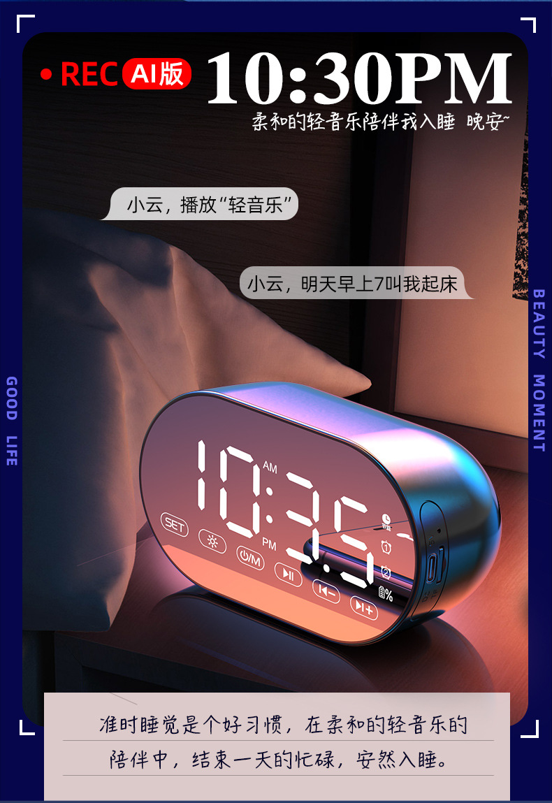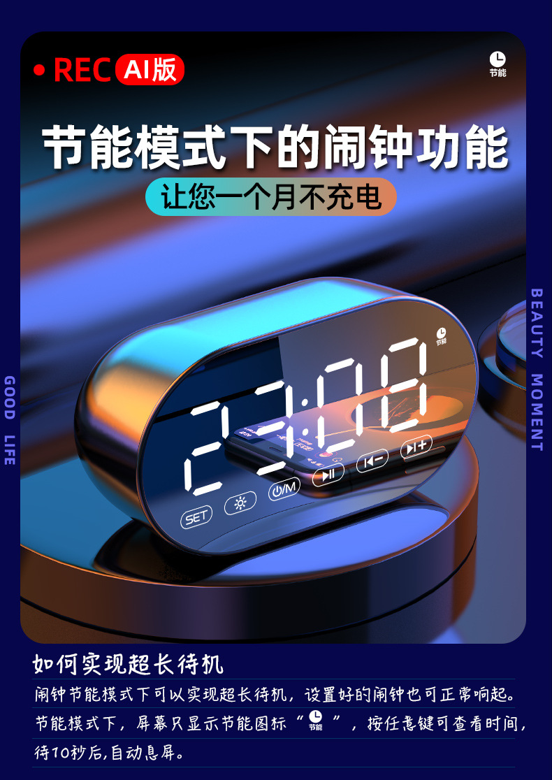무선 다기능 학생용 알람시계 블루투스 스피커 대용량 소리로 깨우는 미니 서브우퍼