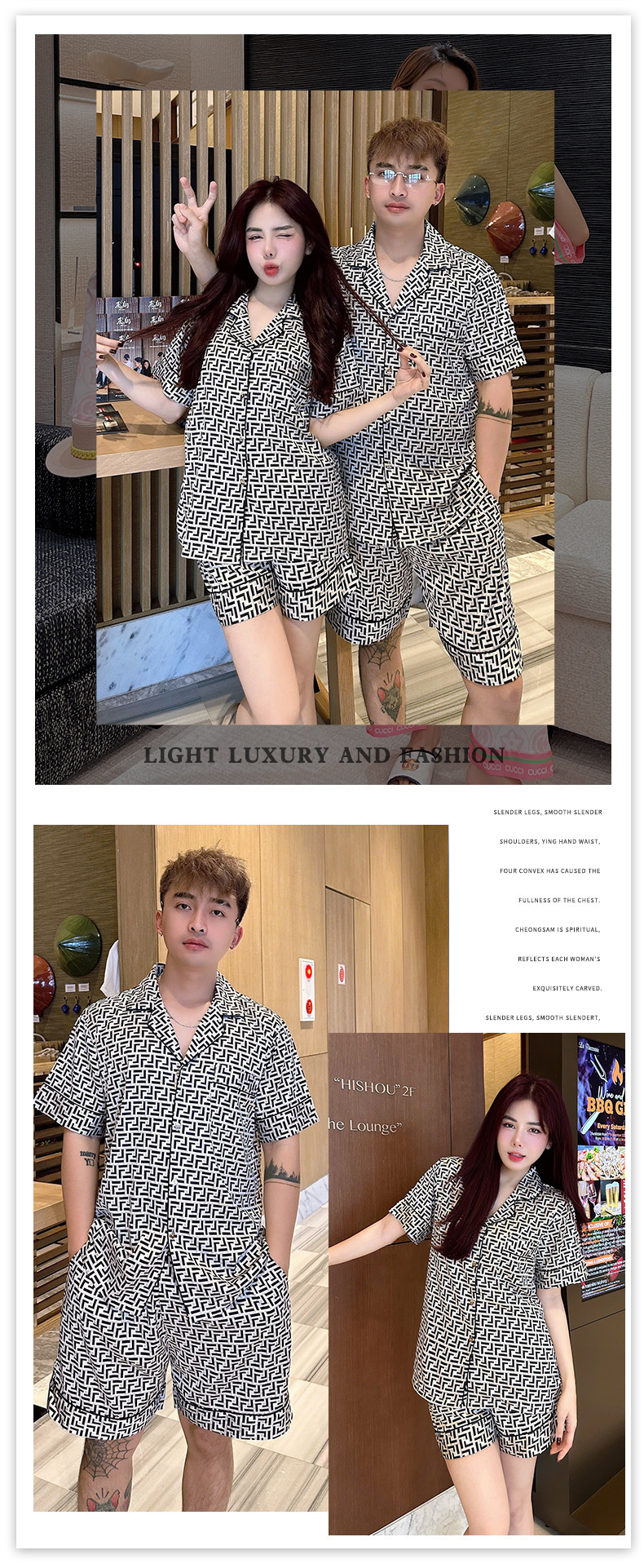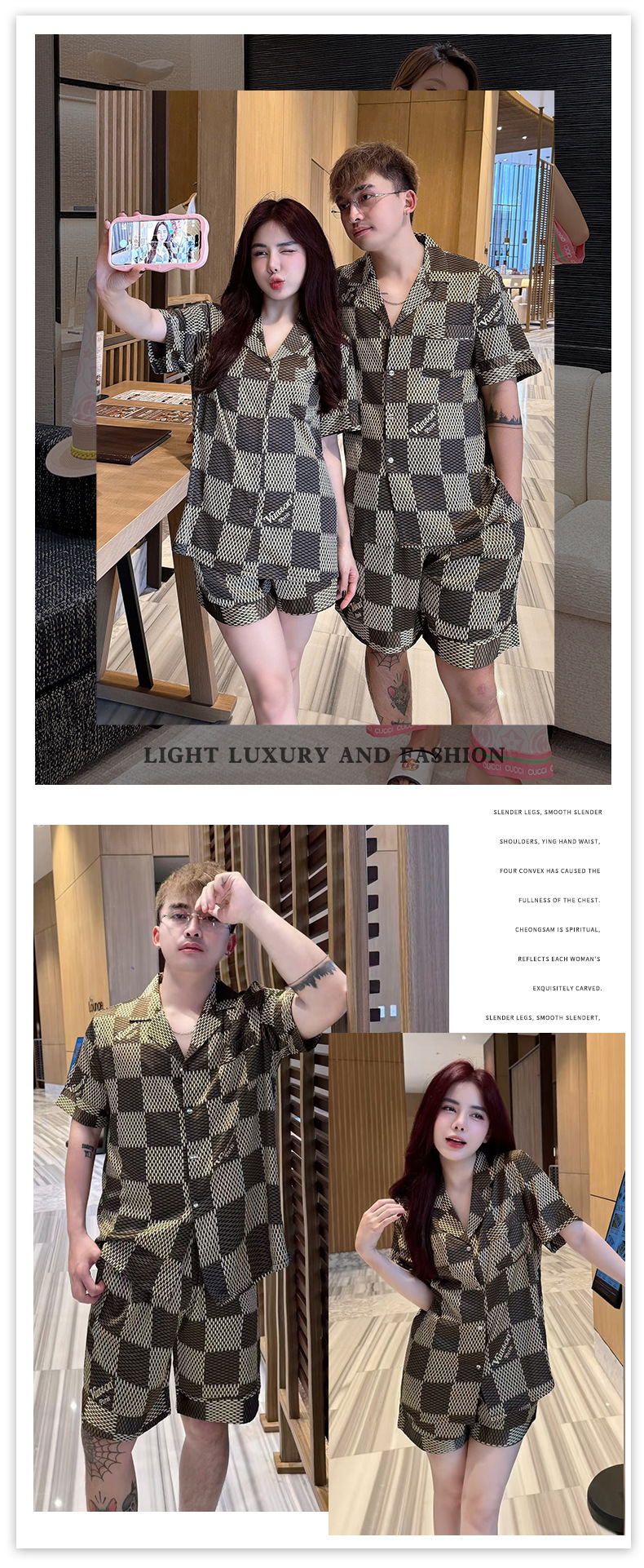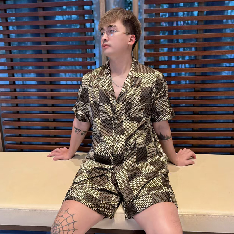 • XLO 트렌디 브랜드 Vjia 쌀 체커보드 더블 쇼트 남성