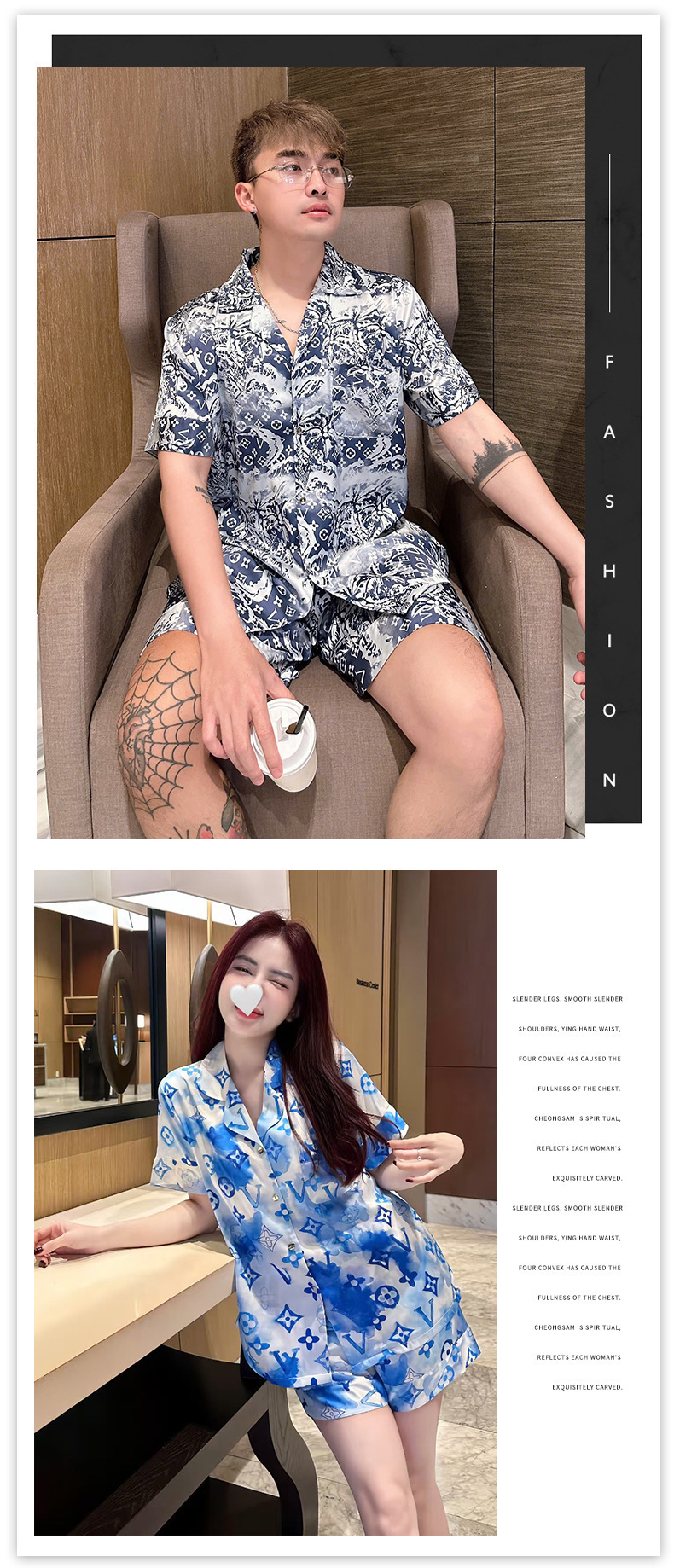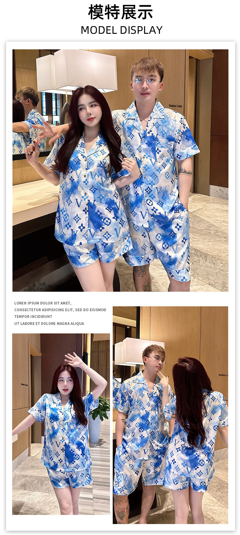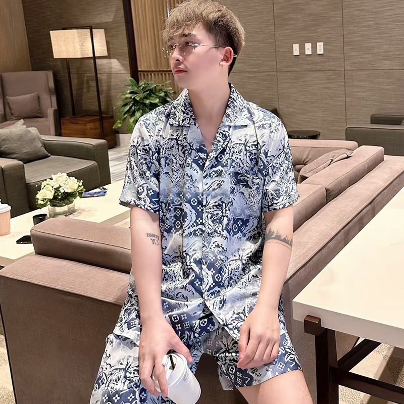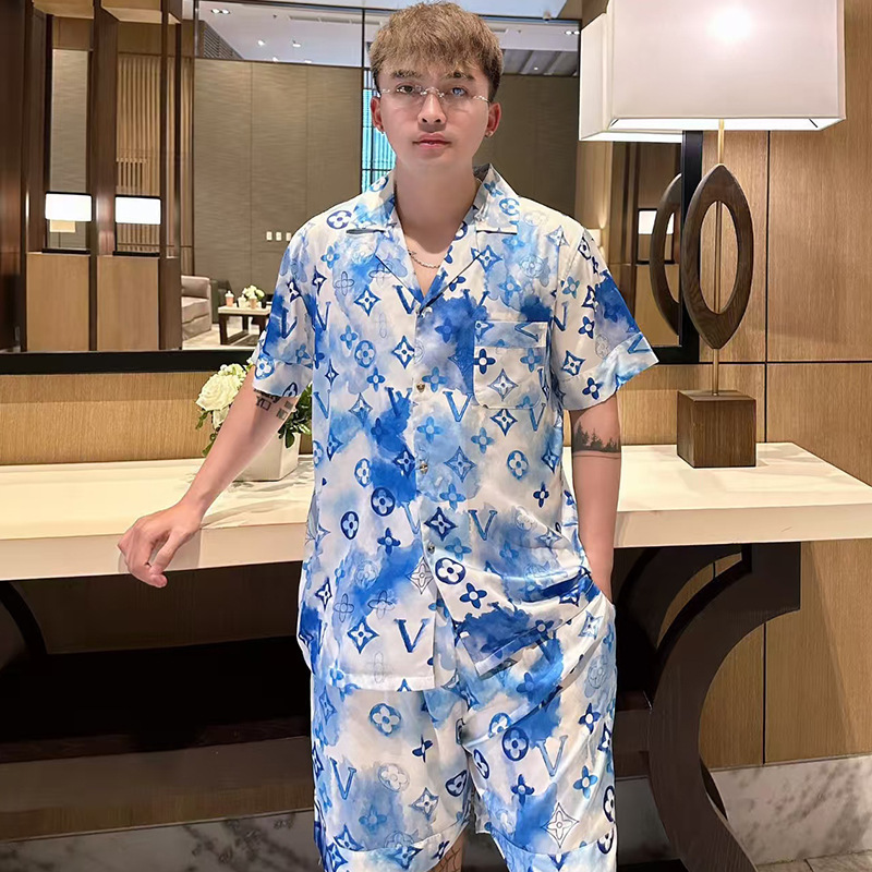 • XLO 트렌디 브랜드 V 홈 그래피티 블루 더블 쇼트 남성