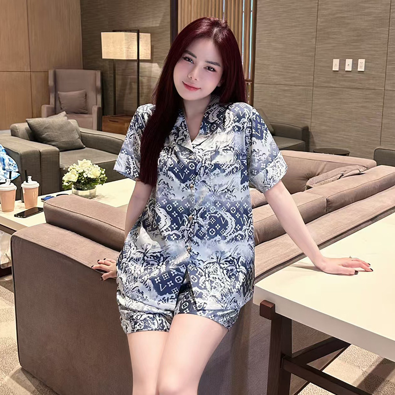 소스 공장 제품 2025 여름 신작 여성용 잠옷 아이스 실크 원피스 드롭 배송 Douyin 라이브 스타일 가정용 실크 실크스토어 가기