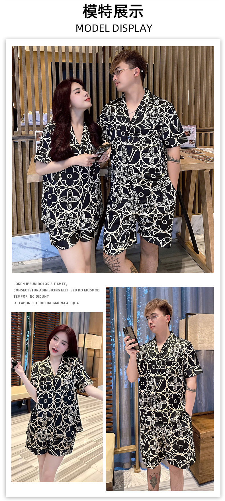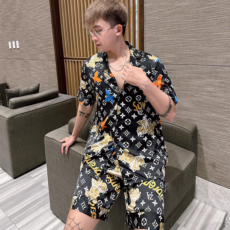 • XLO 트렌디 브랜드 V 패밀리 빅 플라워 블랙 골드 더블 쇼트 남성