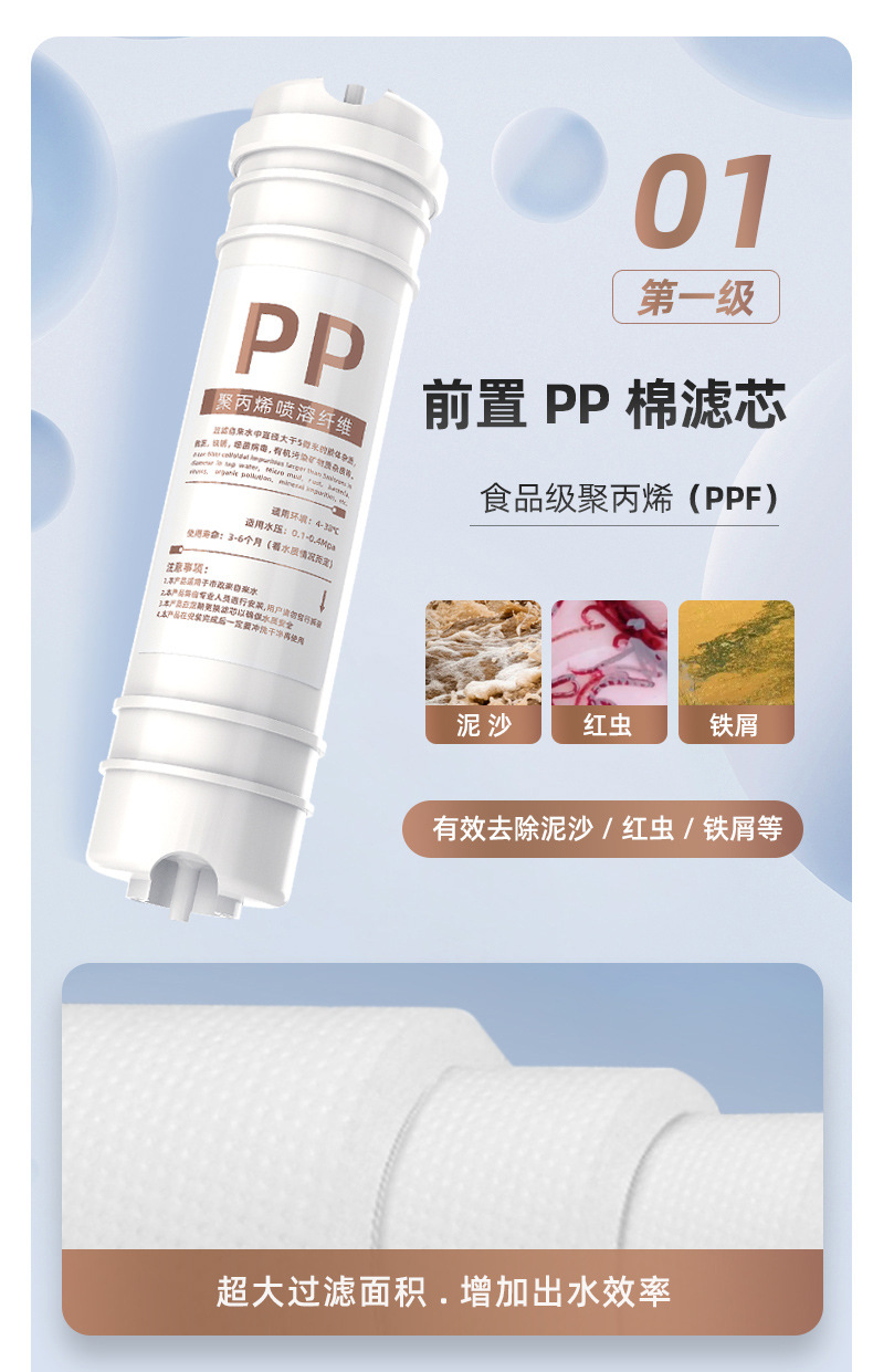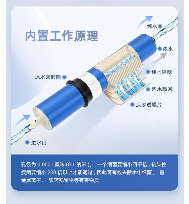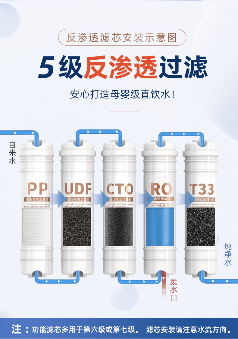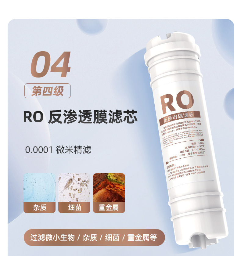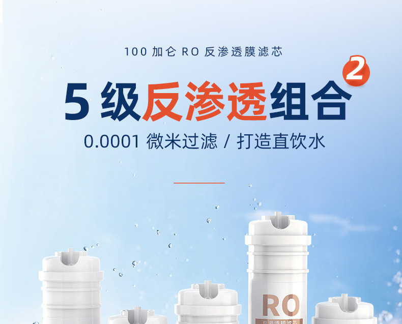 • 통합 스케일 방지 5단계 RO 필터 요소 [충전됨]