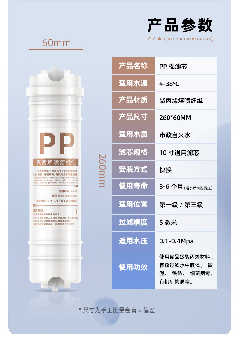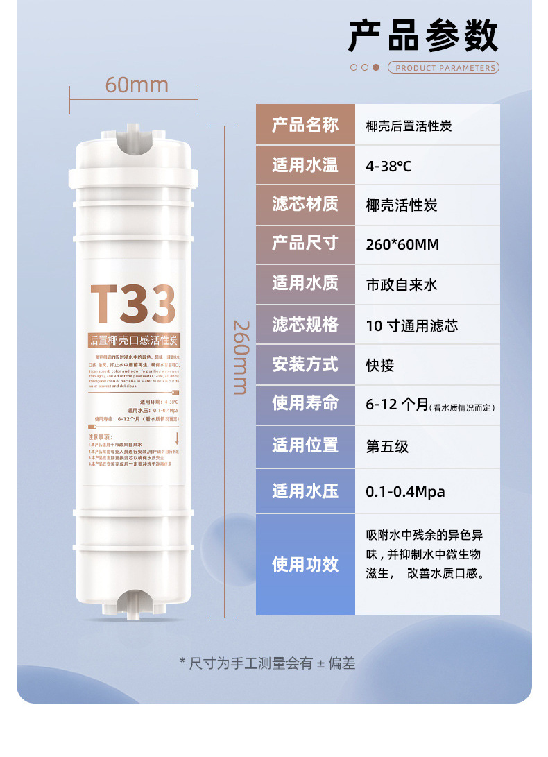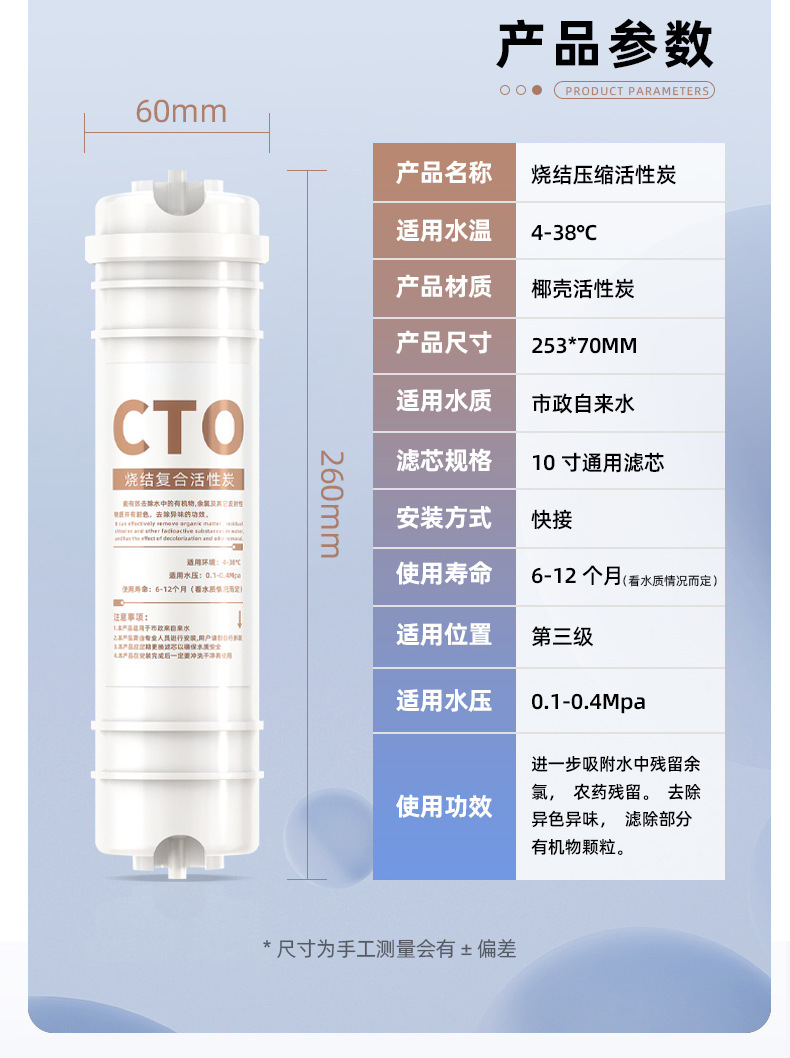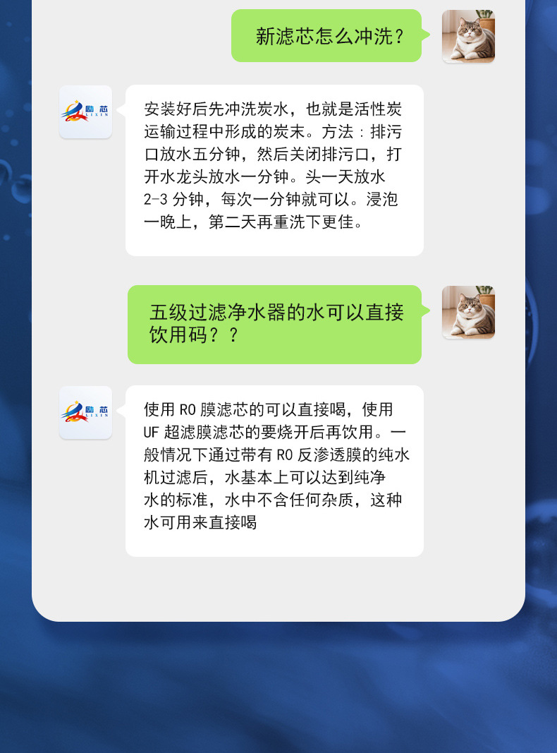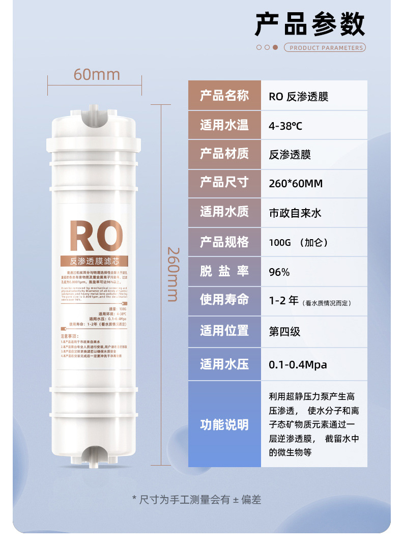 • 통합 스케일 방지 5단계 RO 필터 요소 [충전됨]