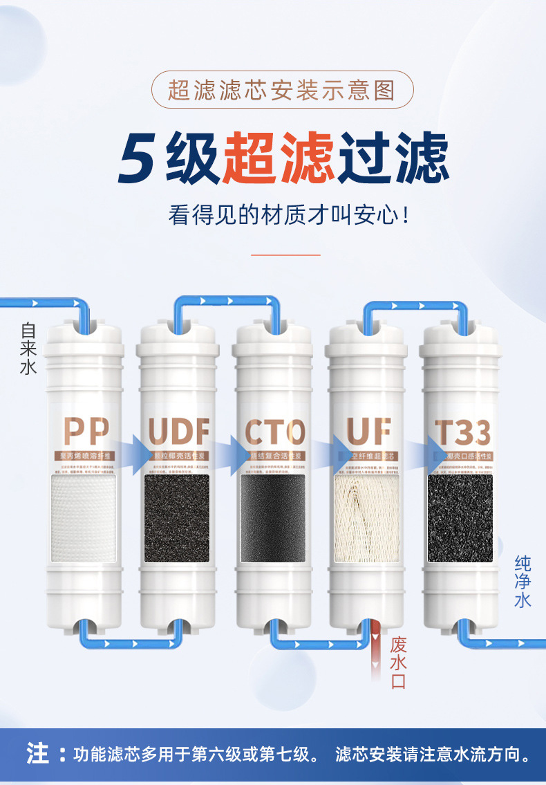 정수기 필터 요소 10inch 퀵 커넥트 한국식 일체형 퀵 커넥트 PP 면 UDF 초미세 RO 역삼투 5단계 세트스토어 가기
