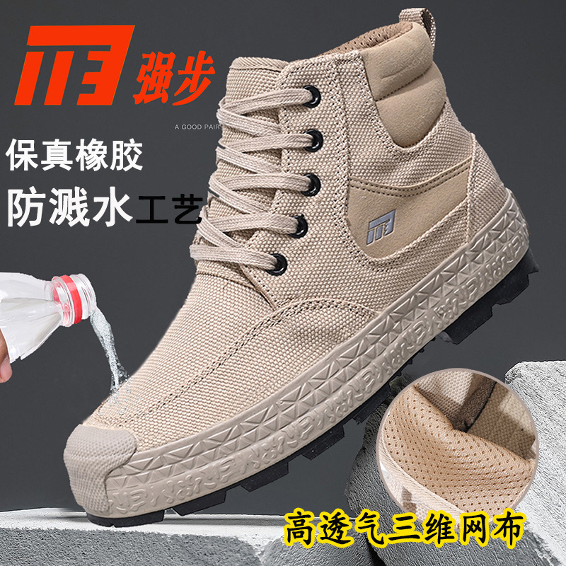 Qiangbu 1137 정품 방수 및 내유성 남성 신발 야외 하이킹 트레이닝 신발 하이 탑 노동 보호 신발 작업 신발스토어 가기