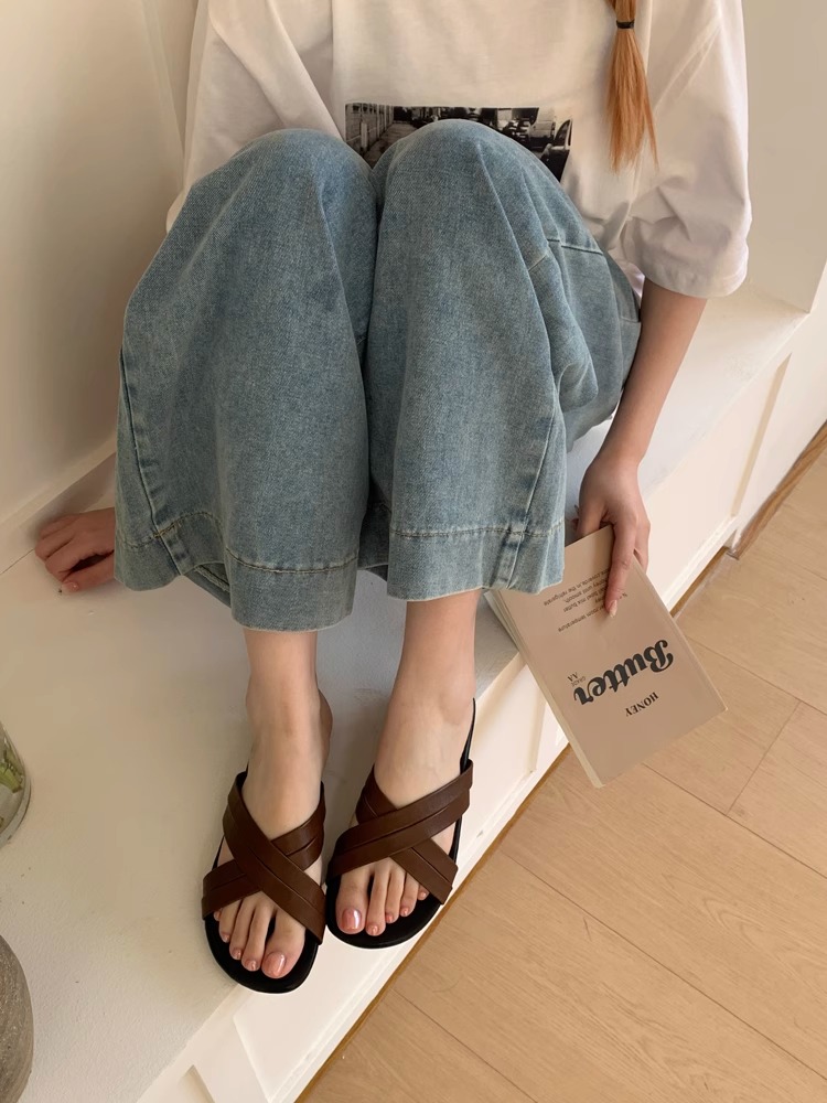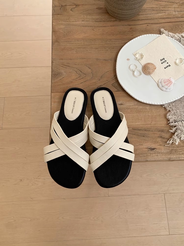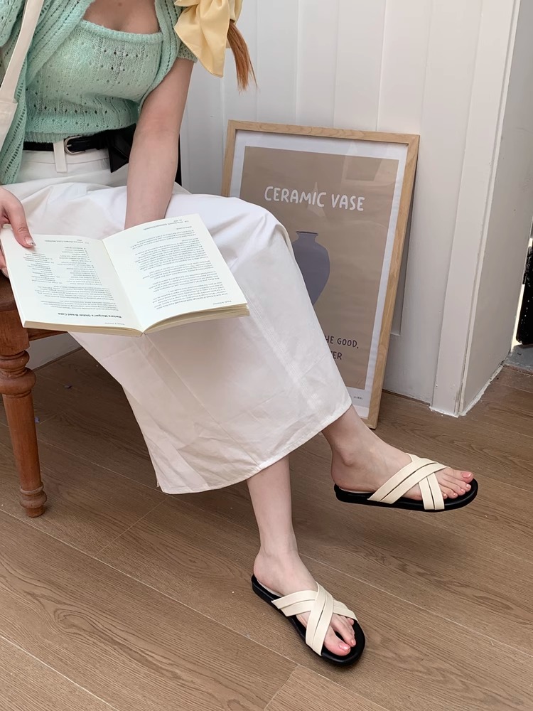 여성용 디자인 틈새 플랫 슬리퍼, 여름 아우터, 해변 비치 슈즈, 샌들, 크로스 샌들, 로마 슈즈, 여성용 신발스토어 가기