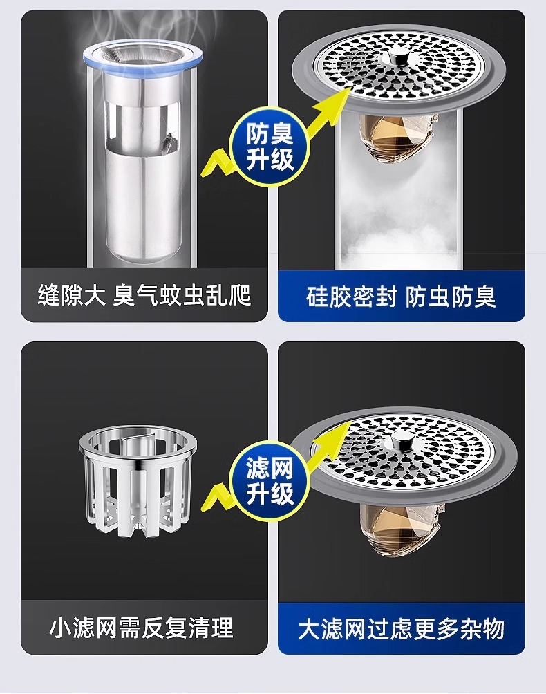 ✅ 독일산 탈취제 바닥 배수 코어, 욕실 범용 밀봉 커버, 필터, 하수구, 방충 및 모발 방지, 냄새 방지스토어 가기