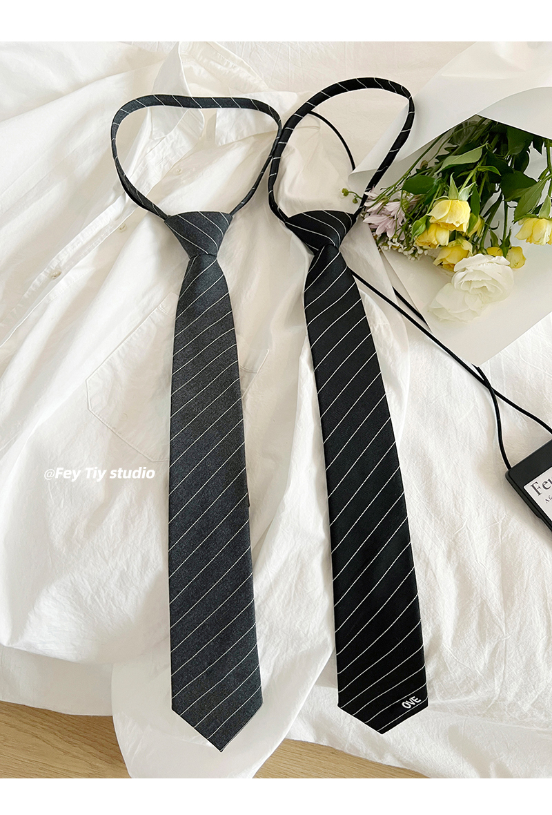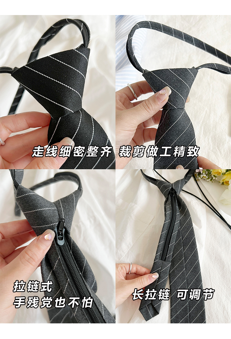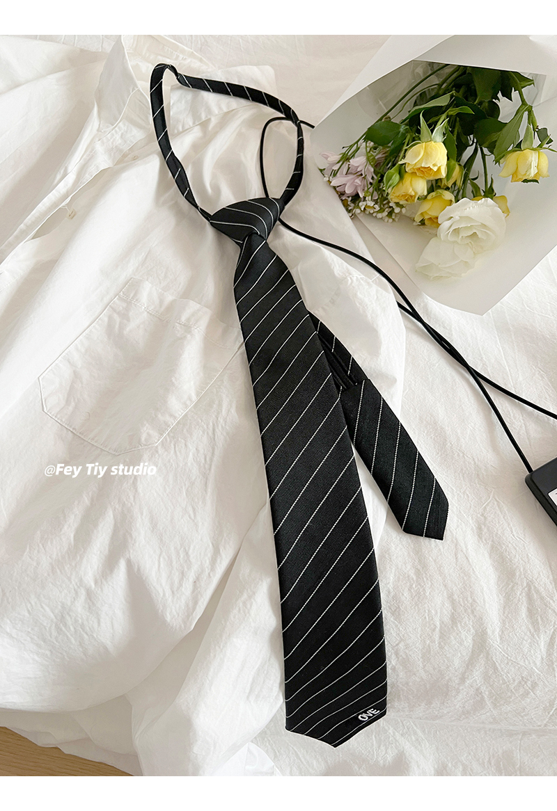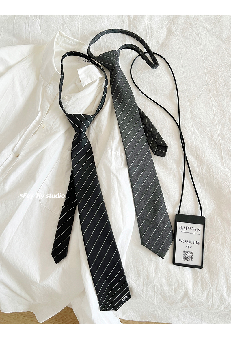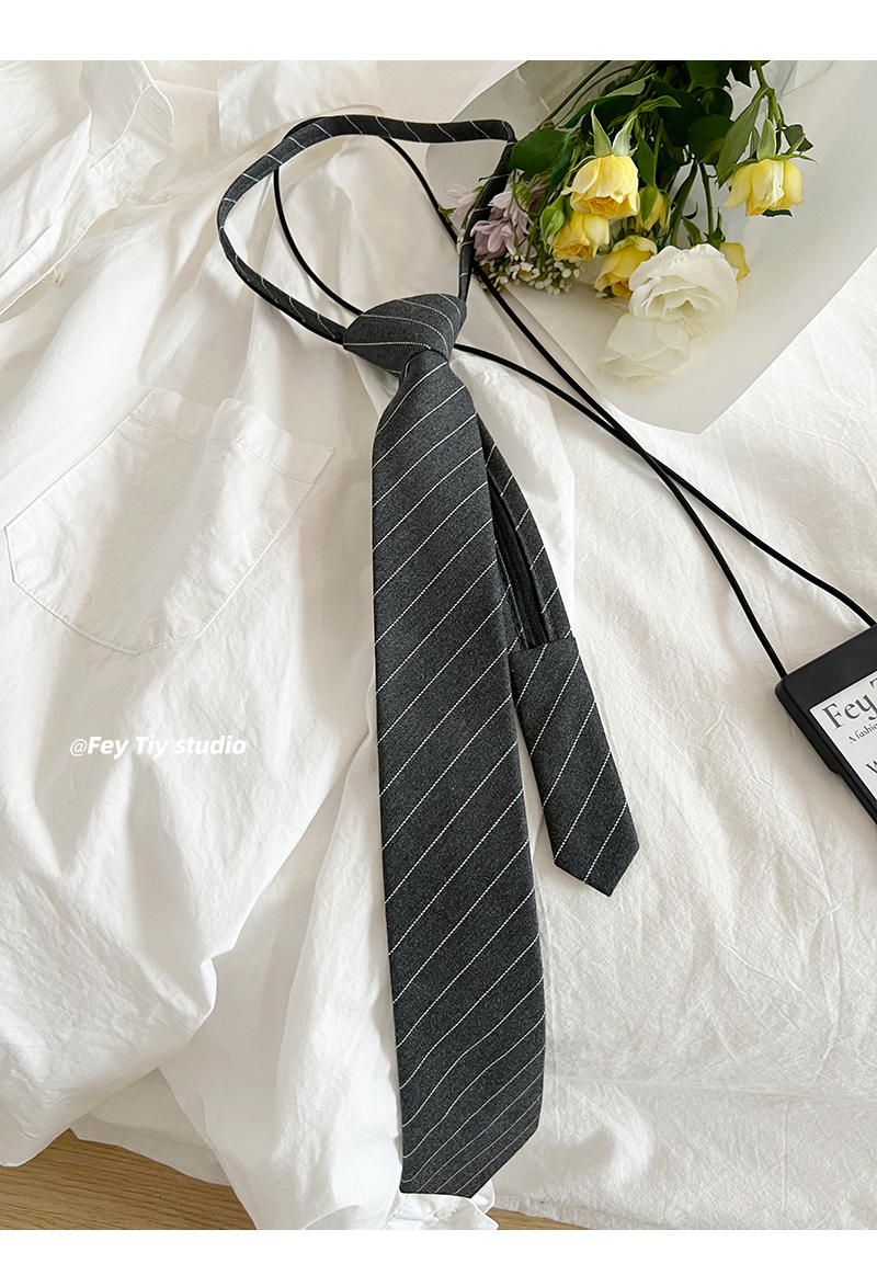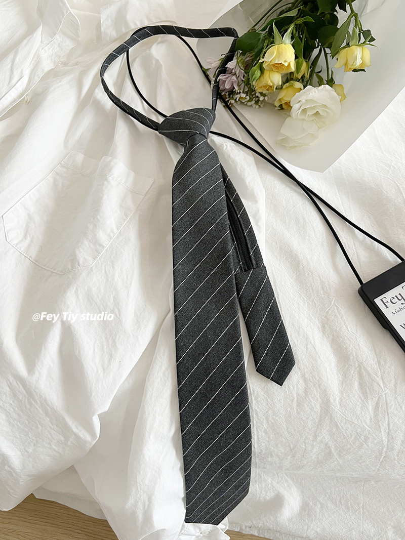 feytiy 세련된 오피스 스타일 매듭없는 넥타이 스트라이프 지퍼 대학 스타일 복고풍 단순 여성 다용도 트렌드