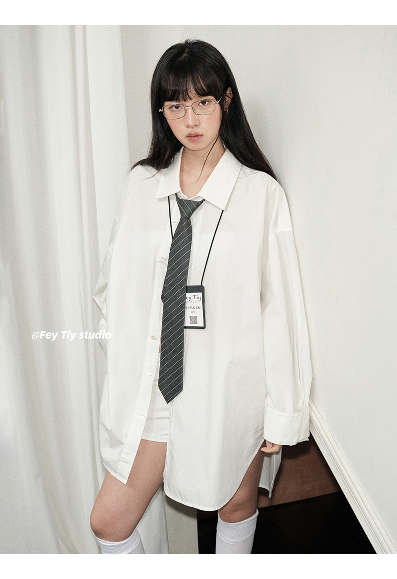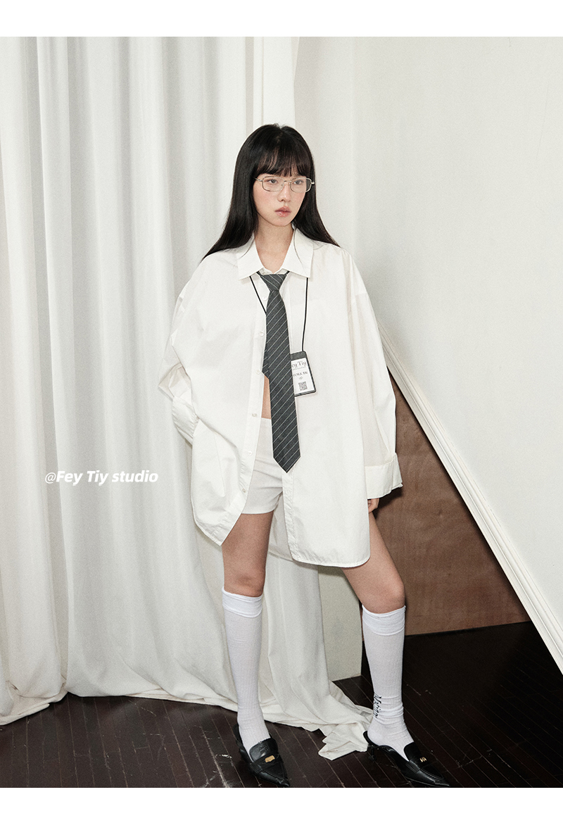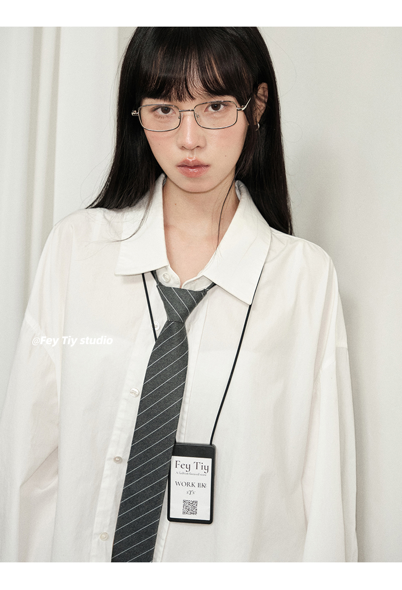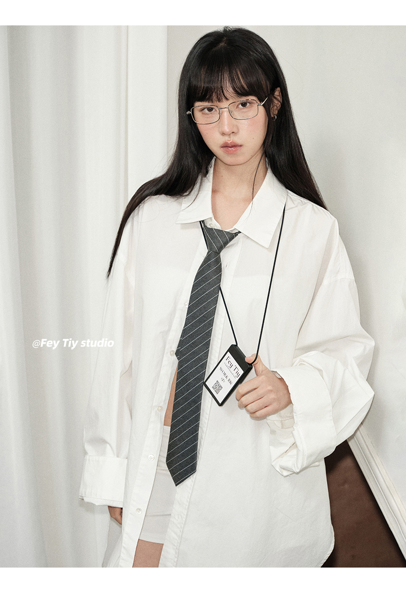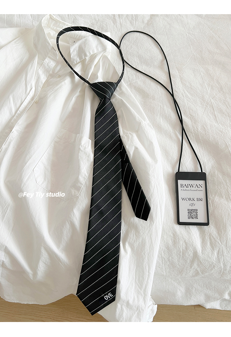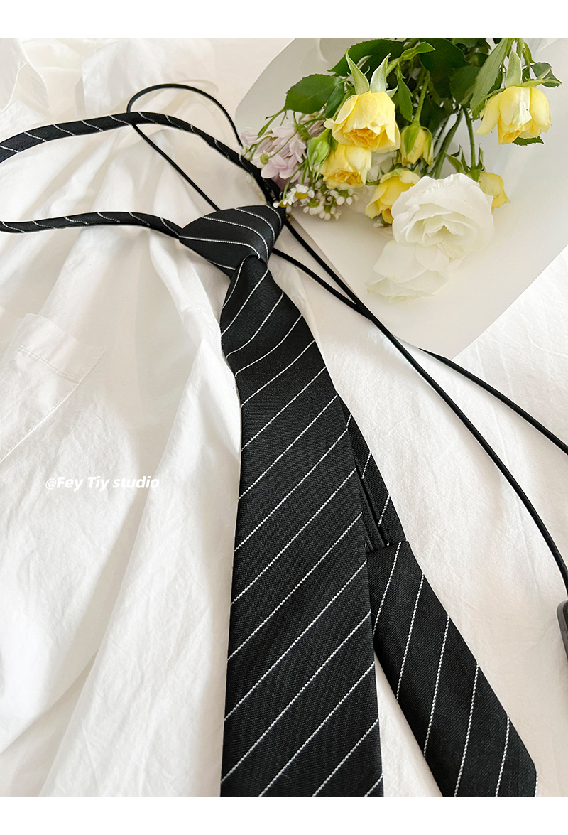 feytiy 세련된 오피스 스타일 매듭없는 넥타이 스트라이프 지퍼 대학 스타일 복고풍 단순 여성 다용도 트렌드