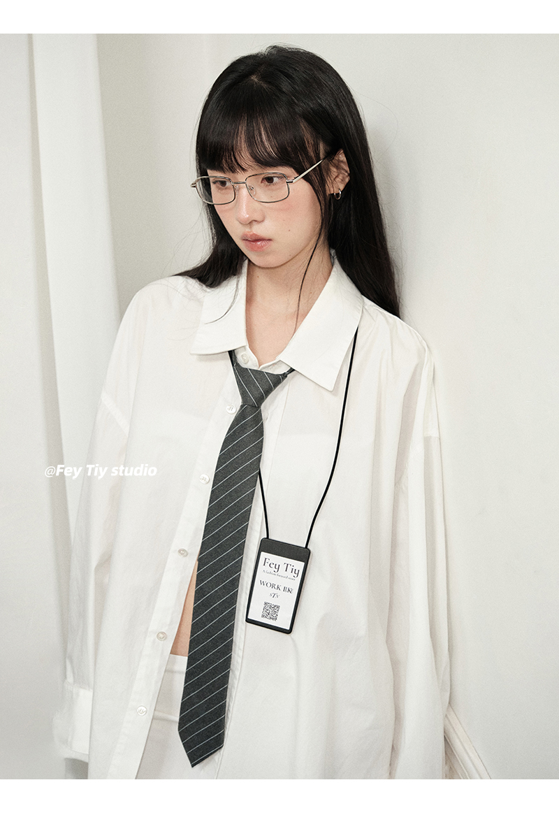 feytiy 세련된 오피스 스타일 매듭없는 넥타이 스트라이프 지퍼 대학 스타일 복고풍 단순 여성 다용도 트렌드스토어 가기