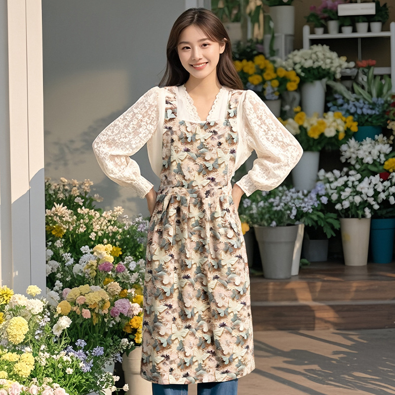 꽃무늬 앞치마, 고급스러운 젊은 스타일, 오염 방지 꽃집, 카페, 제과점, 베이킹 작업복