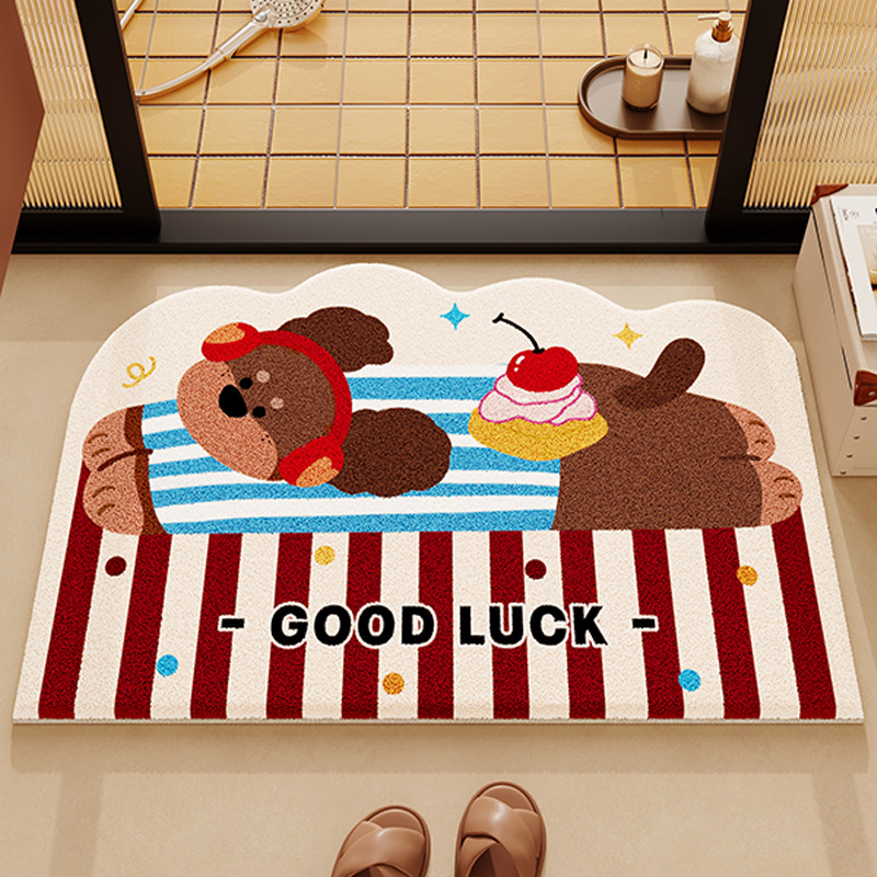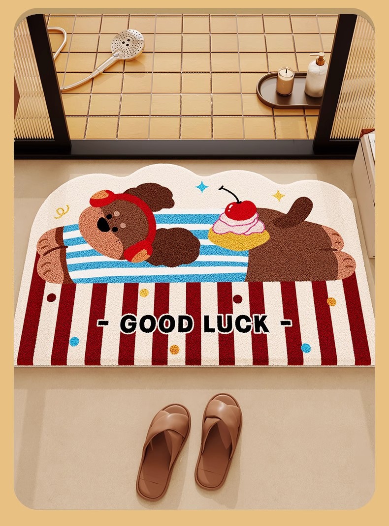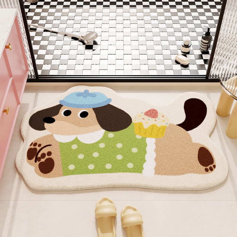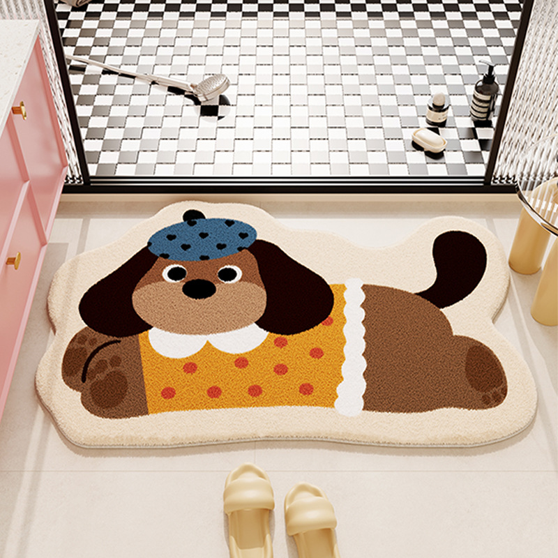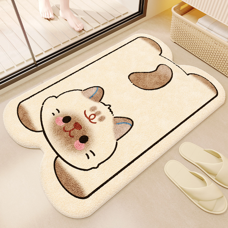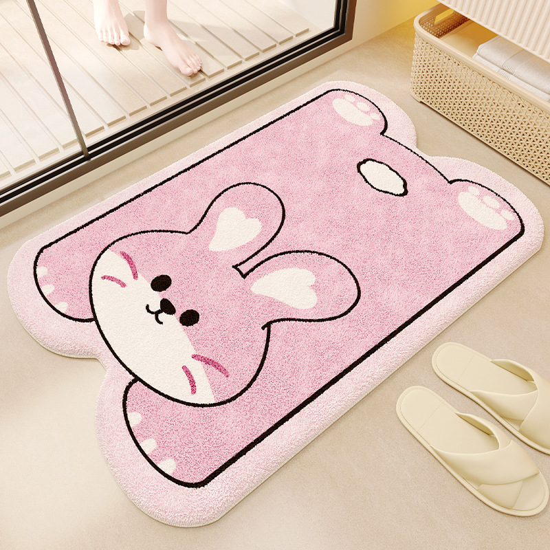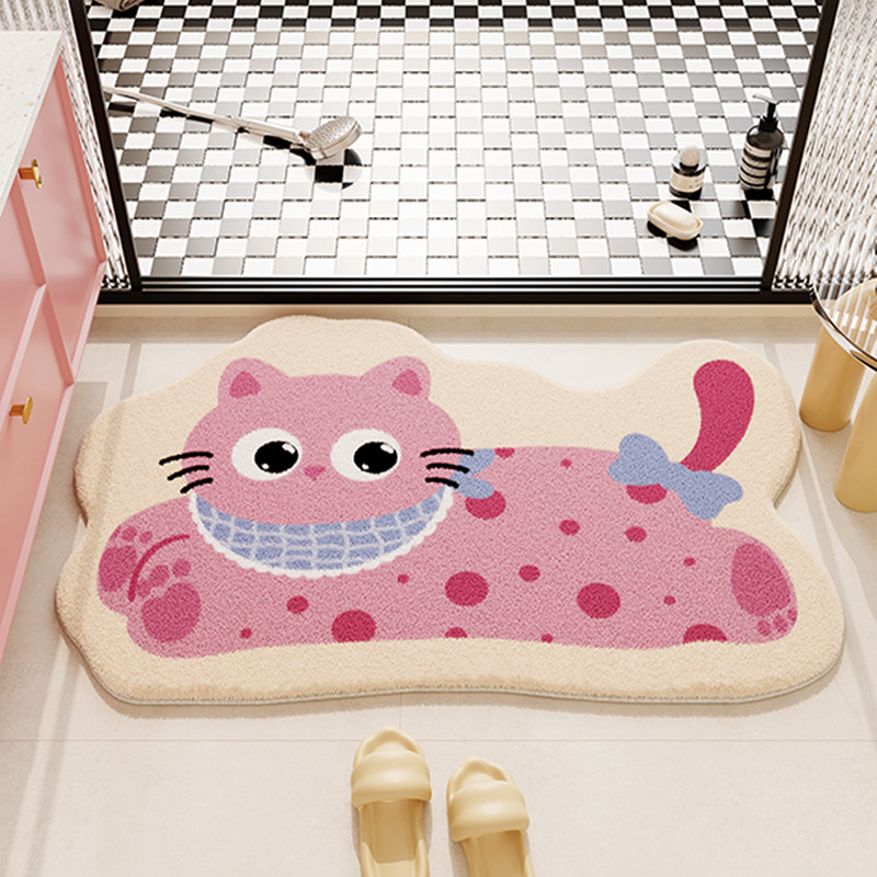 욕실 바닥 매트 만화 동물 모조 캐시미어 흡수성 발 매트 욕실 바닥 매트 홈 욕실 문 미끄럼 방지 바닥 매트