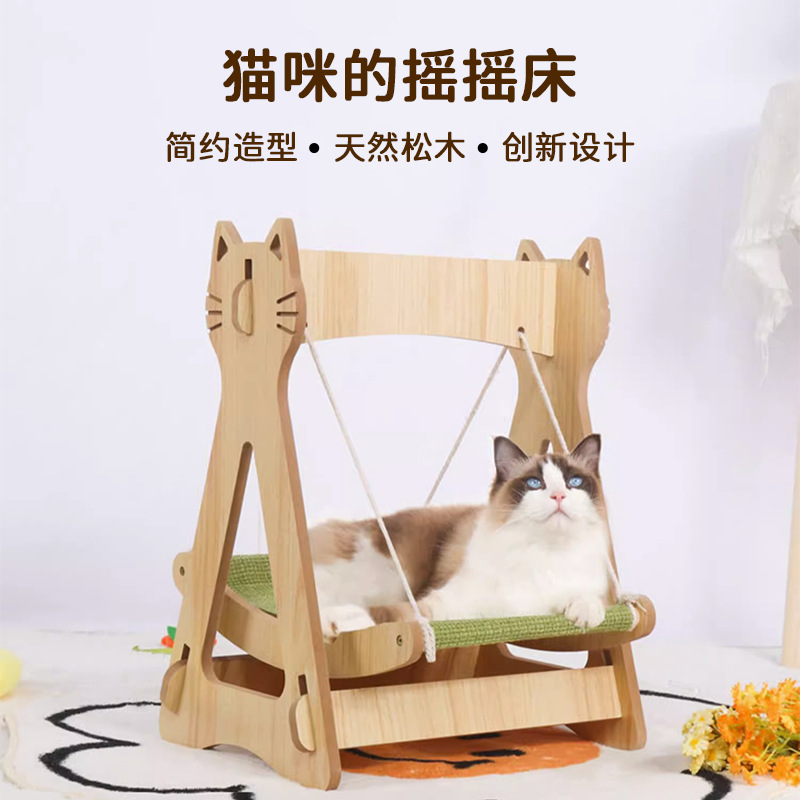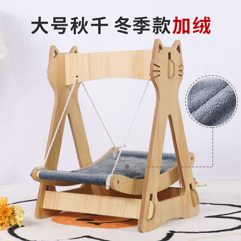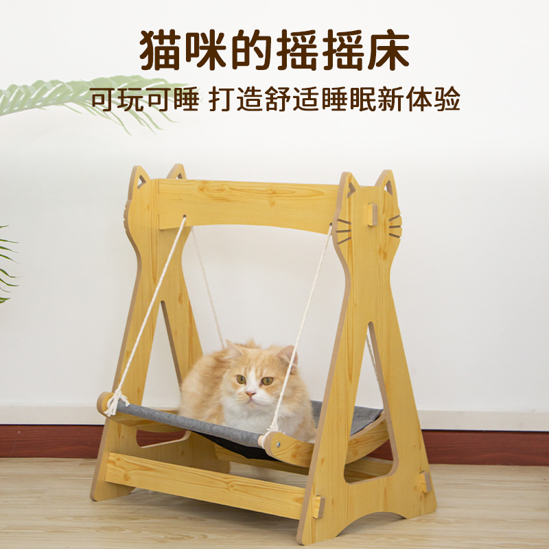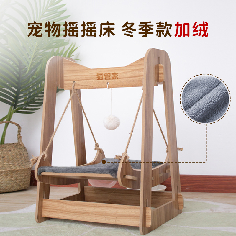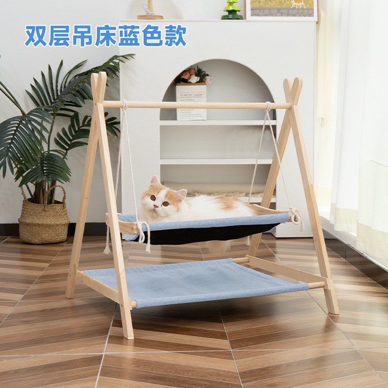 고양이 스윙 해먹 요람 침대 더블 레이어 상단 및 하단 흔들의자 단단한 나무 해먹 고양이 둥지 사계절 범용 애완 동물 스윙스토어 가기