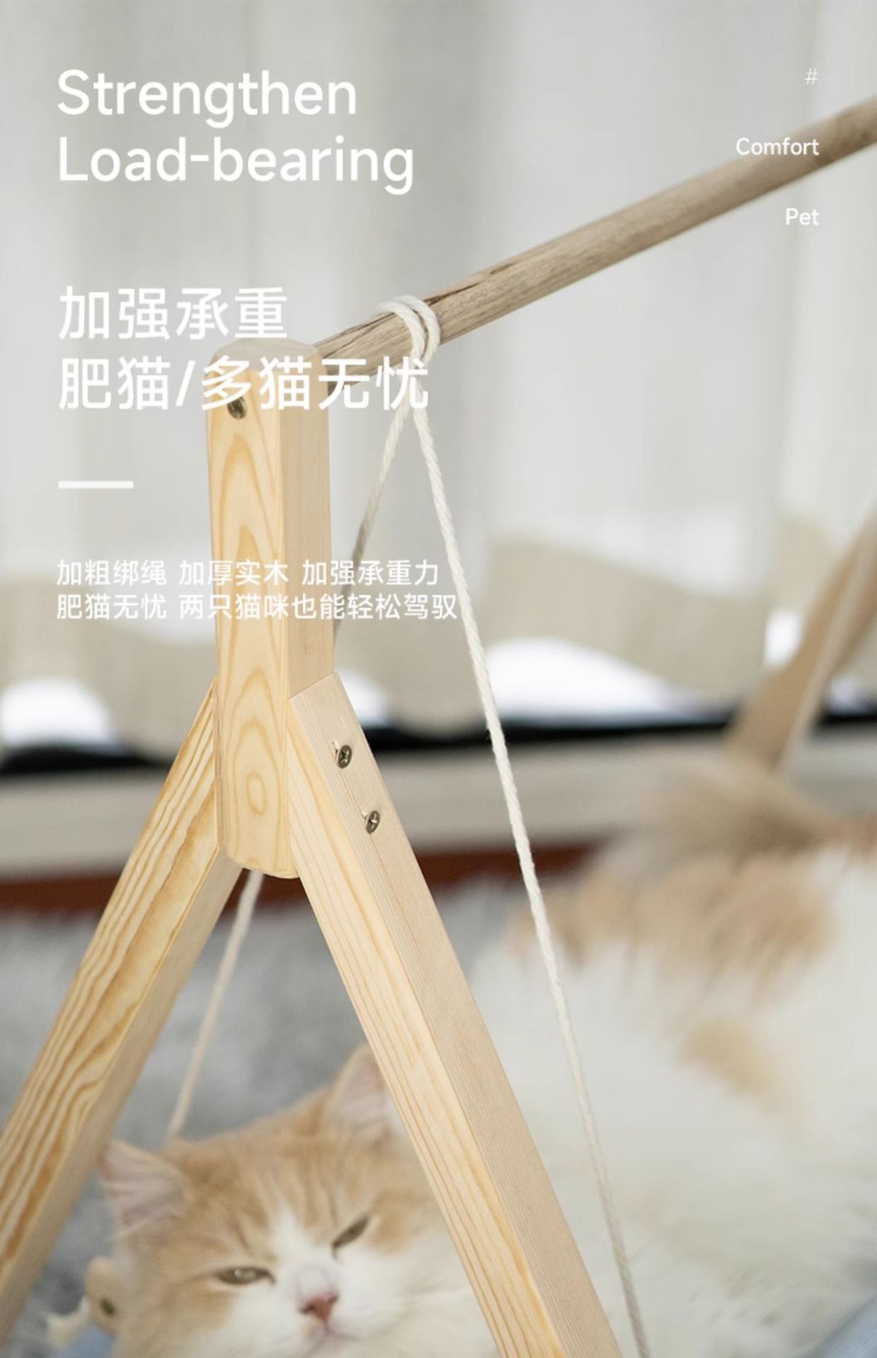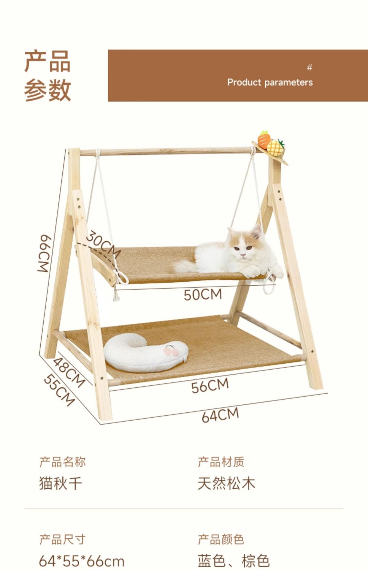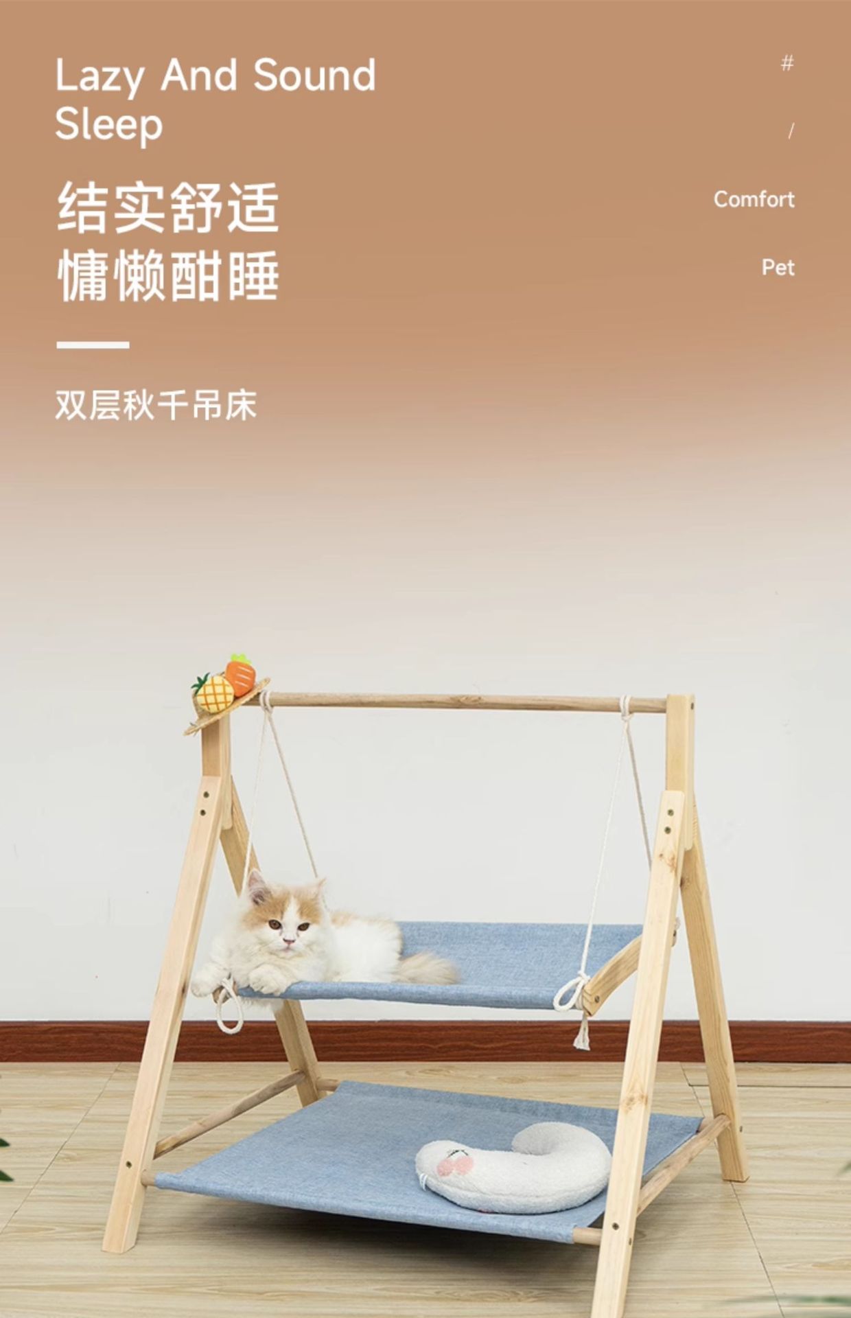 고양이 스윙 해먹 요람 침대 더블 레이어 상단 및 하단 흔들의자 단단한 나무 해먹 고양이 둥지 사계절 범용 애완 동물 스윙