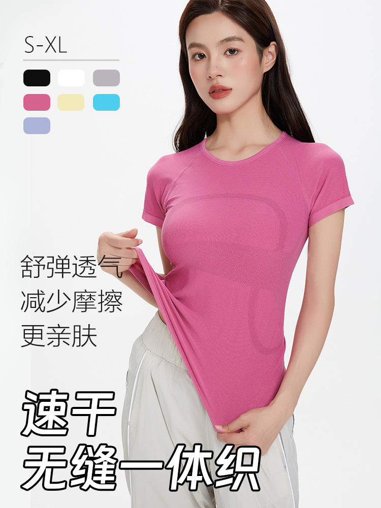 lulu2025 여름 얼음 느낌 반팔 라운드 넥 스포츠 티셔츠 러닝 피트니스 탑 여성 통기성 속건 요가웨어스토어 가기