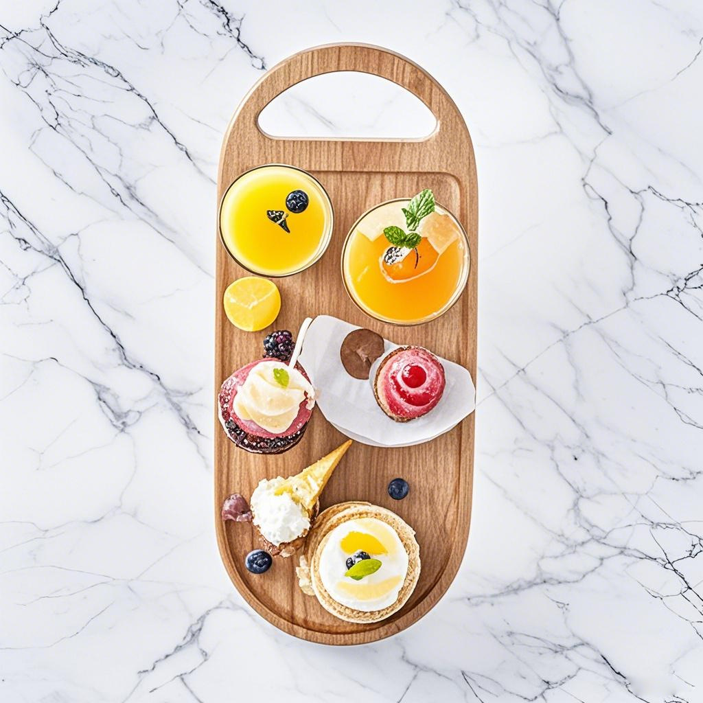 아카시아 나무 트레이 핸들 스타일 간단하고 창의적인 홈 레스토랑 디저트 스낵 트레이 단단한 나무 디너 트레이 공장 재고 있음