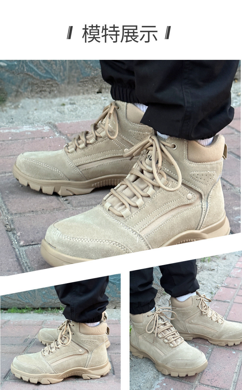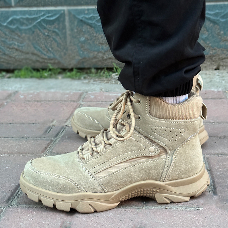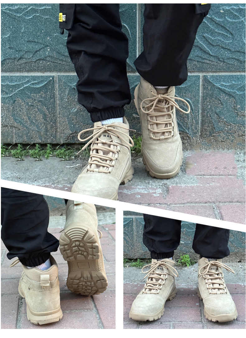 새로운 단일 스타일 봄, 여름, 가을 소가죽 미끄럼 방지 마틴 부츠, 내마모성, 통기성, 모래 방지 야외 군사 훈련 등산 전투 부츠스토어 가기
