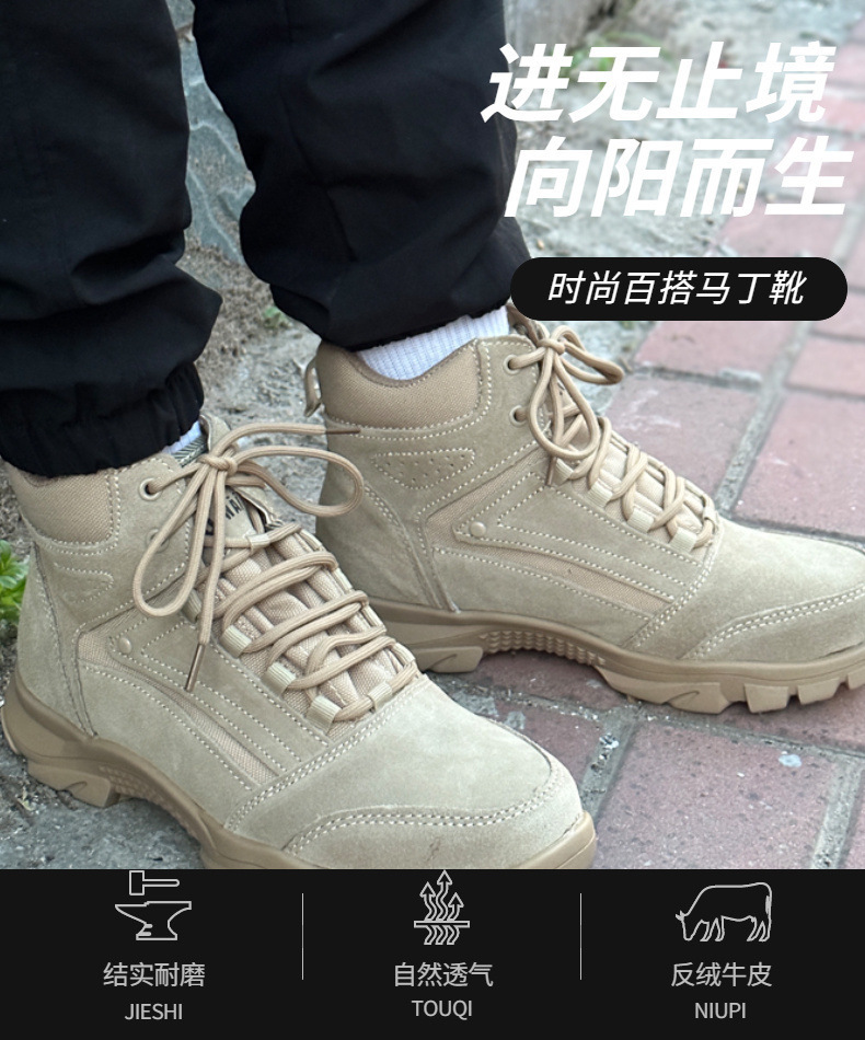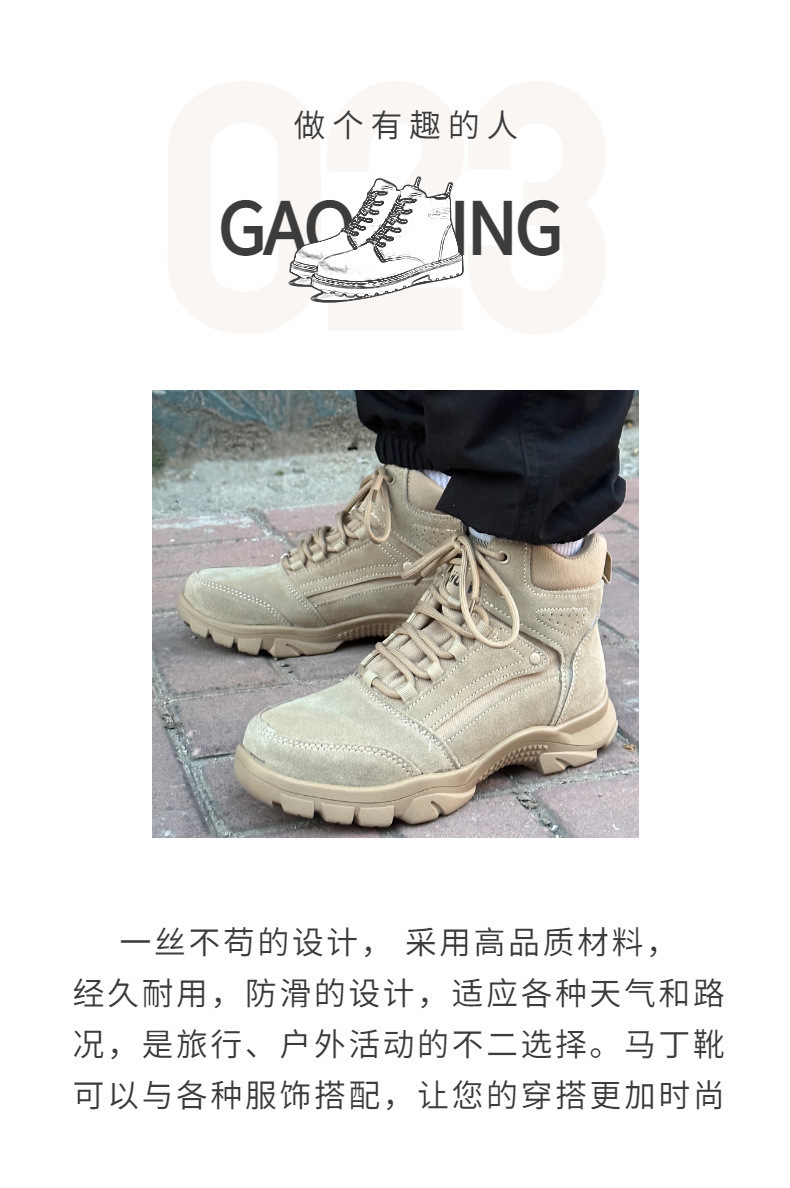 새로운 단일 스타일 봄, 여름, 가을 소가죽 미끄럼 방지 마틴 부츠, 내마모성, 통기성, 모래 방지 야외 군사 훈련 등산 전투 부츠