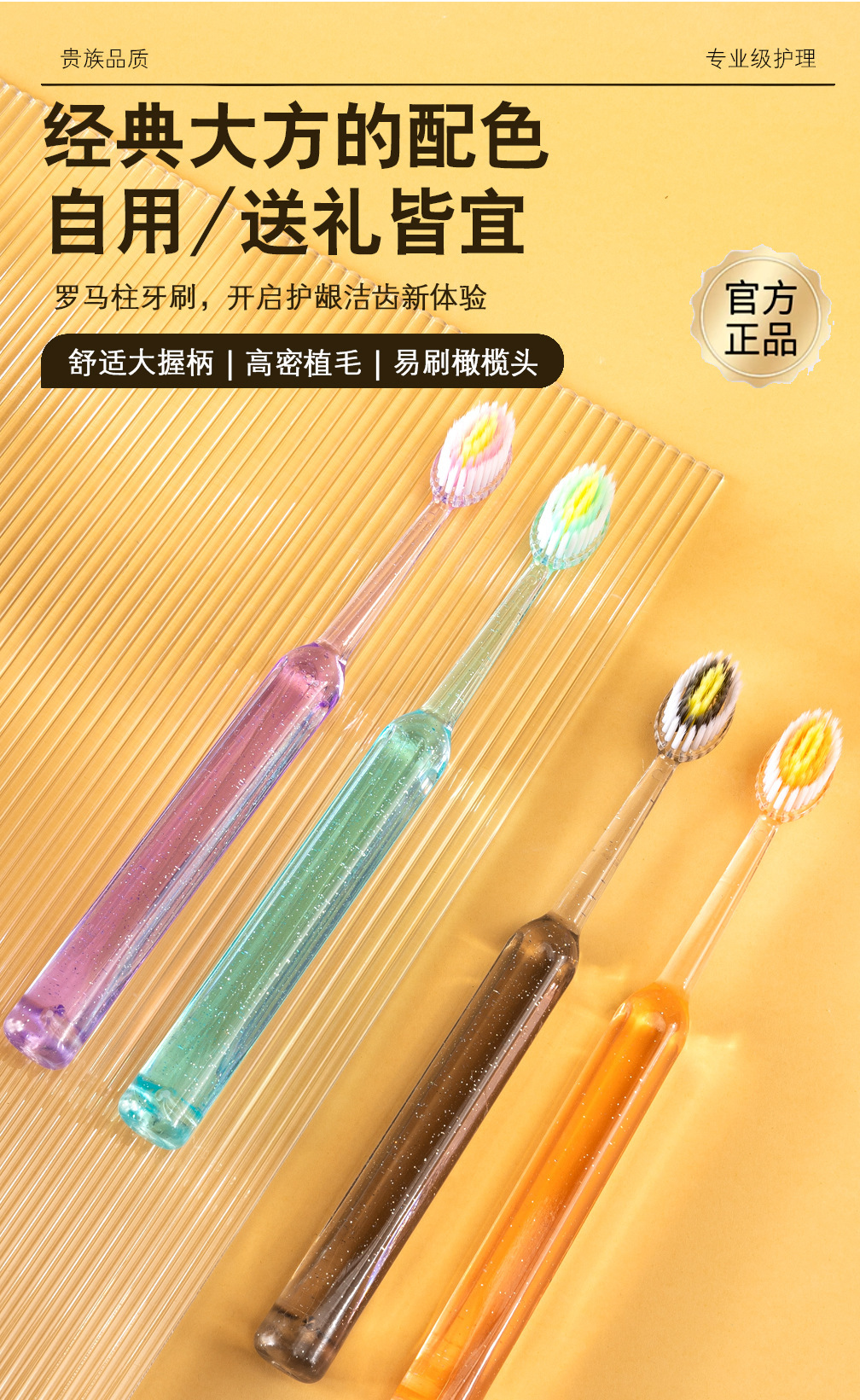 성인용 고급 볼록 로마 기둥 칫솔, 부드러운 강모, 가정용 커플 잇몸 보호 크리스탈 딥 패밀리 팩스토어 가기