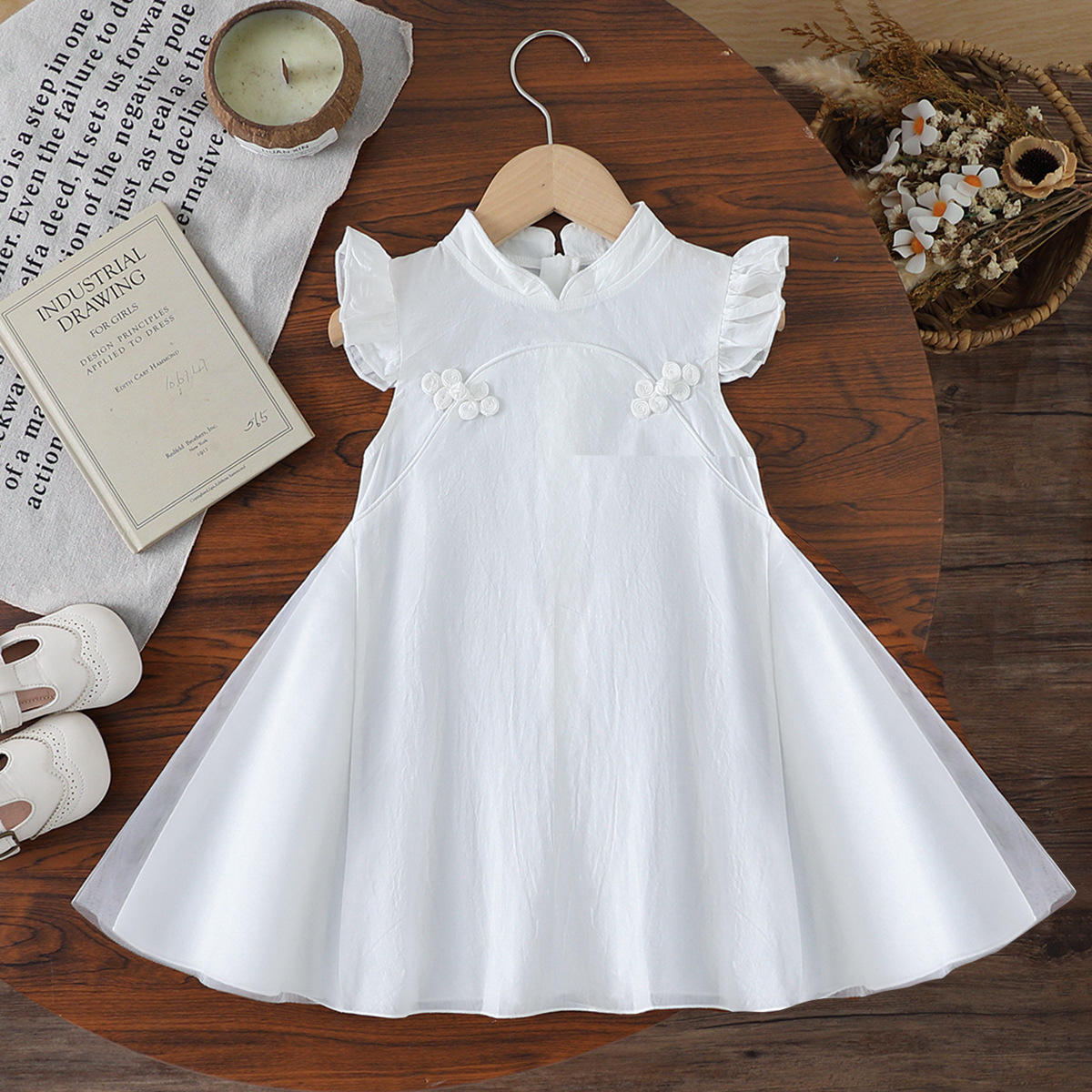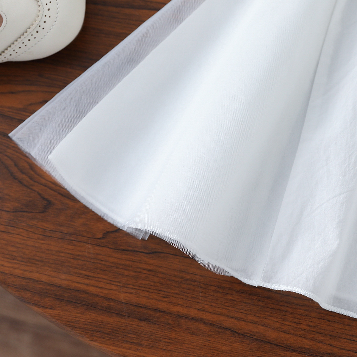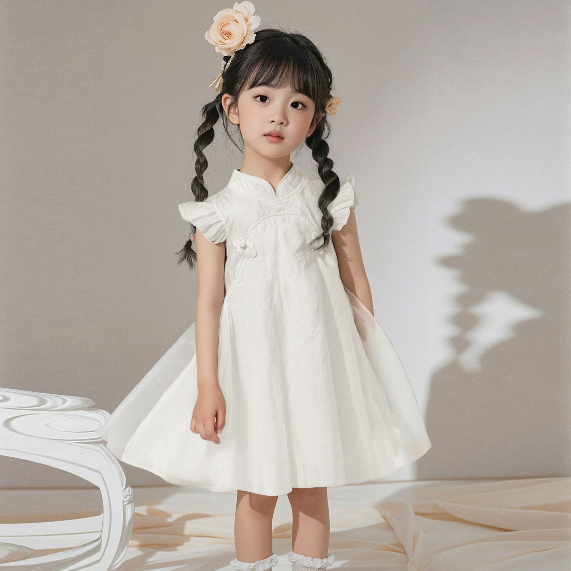 2025 여름 새 스타일 한국 스타일 소녀 민소매 드레스 프릴 퍼프 슬리브 A 클래스 패브릭 순수 코튼 드레스