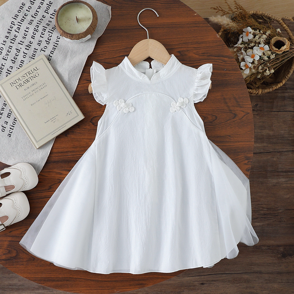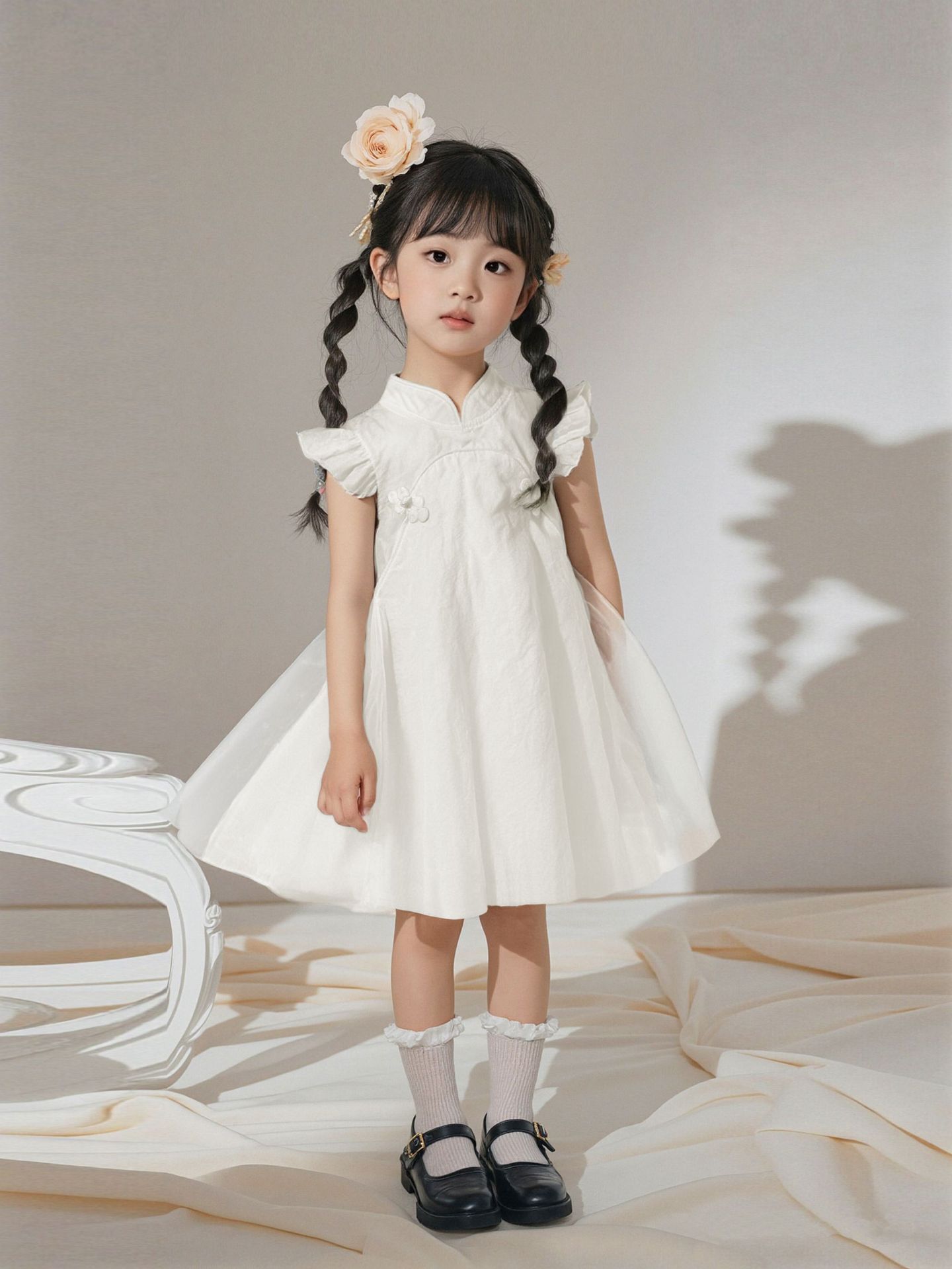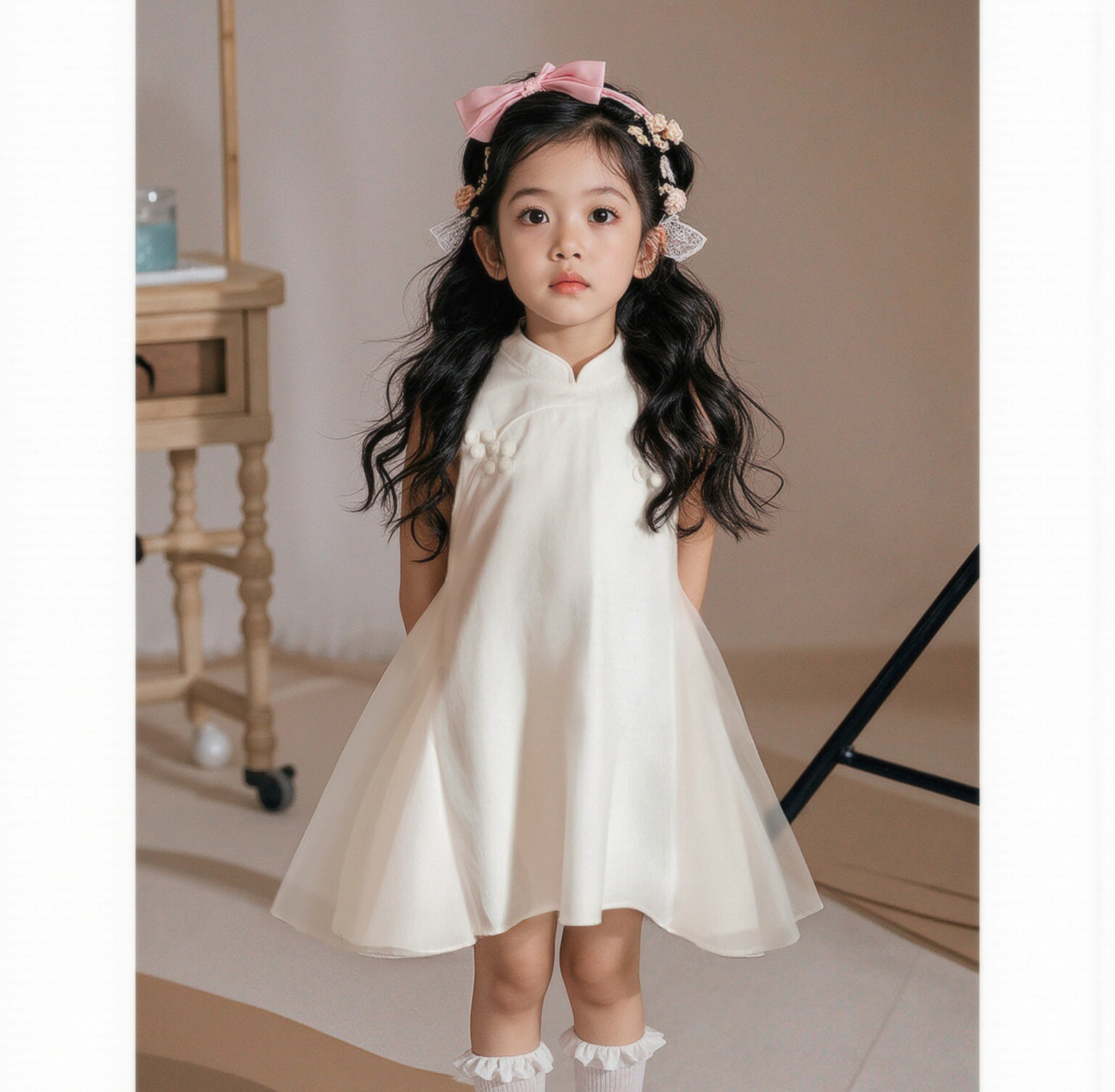 2025 여름 새 스타일 한국 스타일 소녀 민소매 드레스 프릴 퍼프 슬리브 A 클래스 패브릭 순수 코튼 드레스