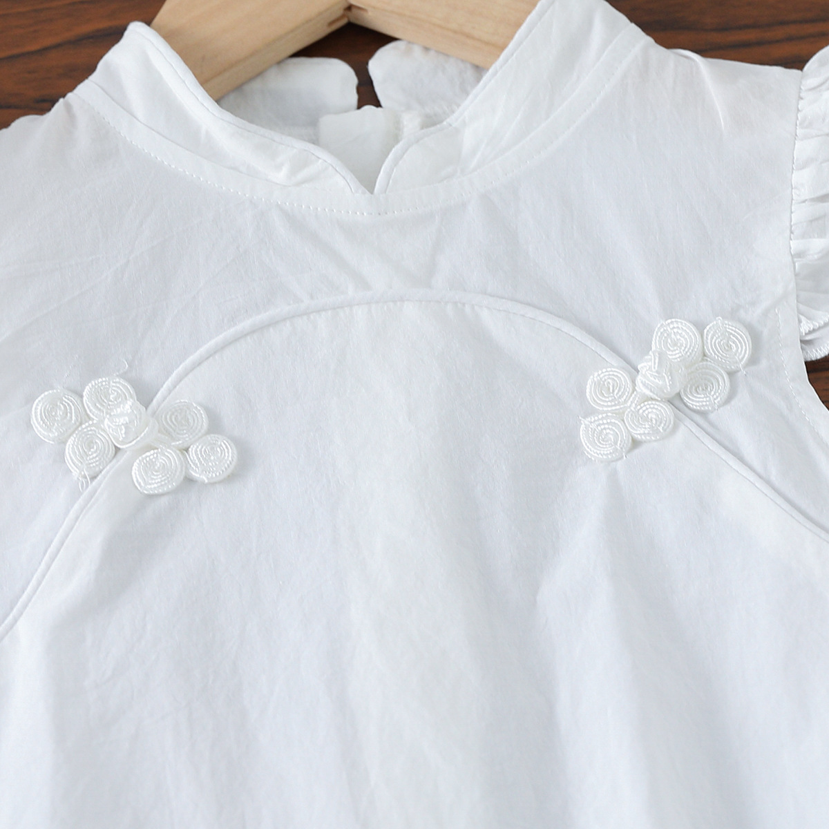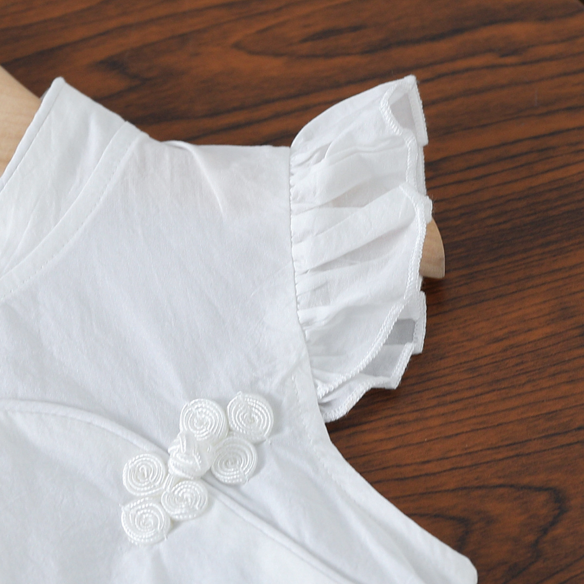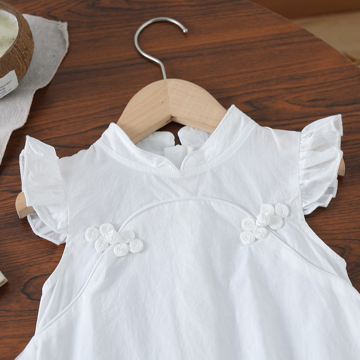 2025 여름 새 스타일 한국 스타일 소녀 민소매 드레스 프릴 퍼프 슬리브 A 클래스 패브릭 순수 코튼 드레스스토어 가기