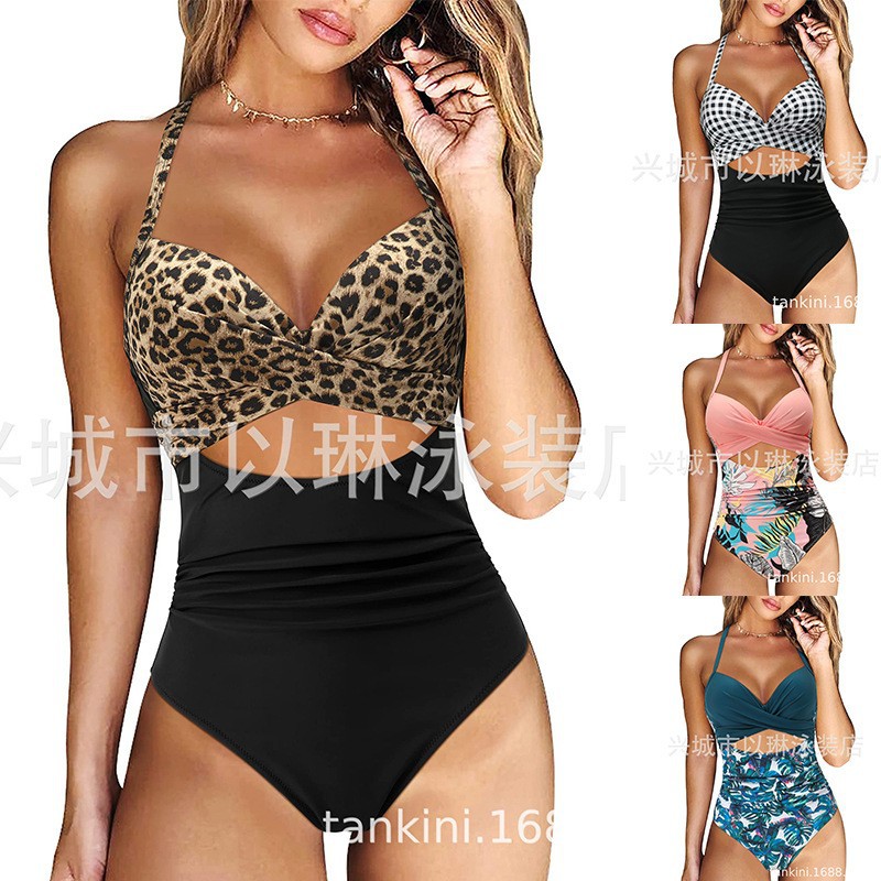 2022 새로운 아마존 원피스 수영복 솔리드 컬러 스플 라이스 비키니 백리스 배 커버 슬리밍 유럽과 미국의 수영복 재고 있음