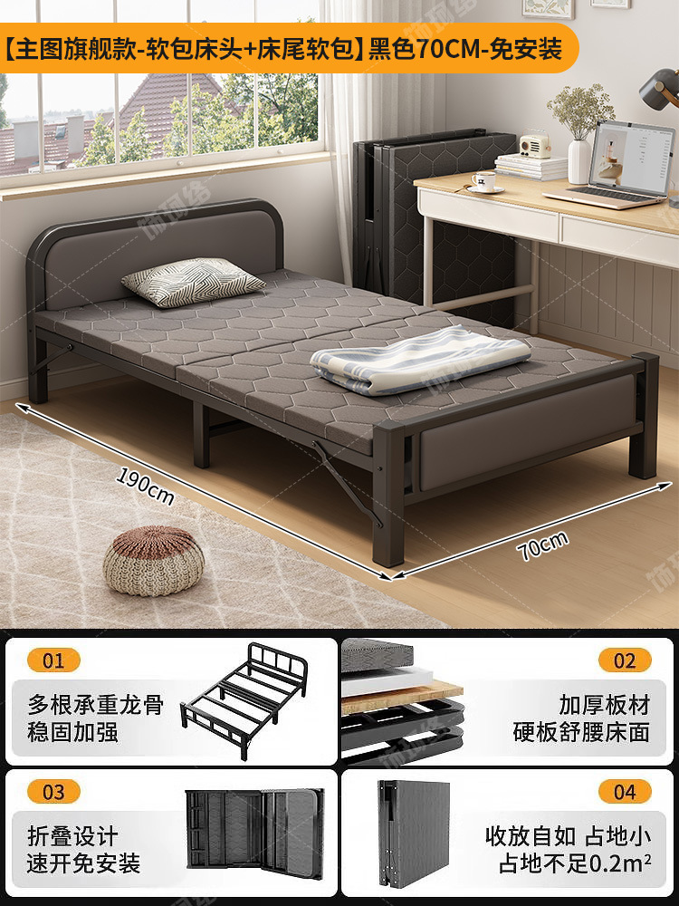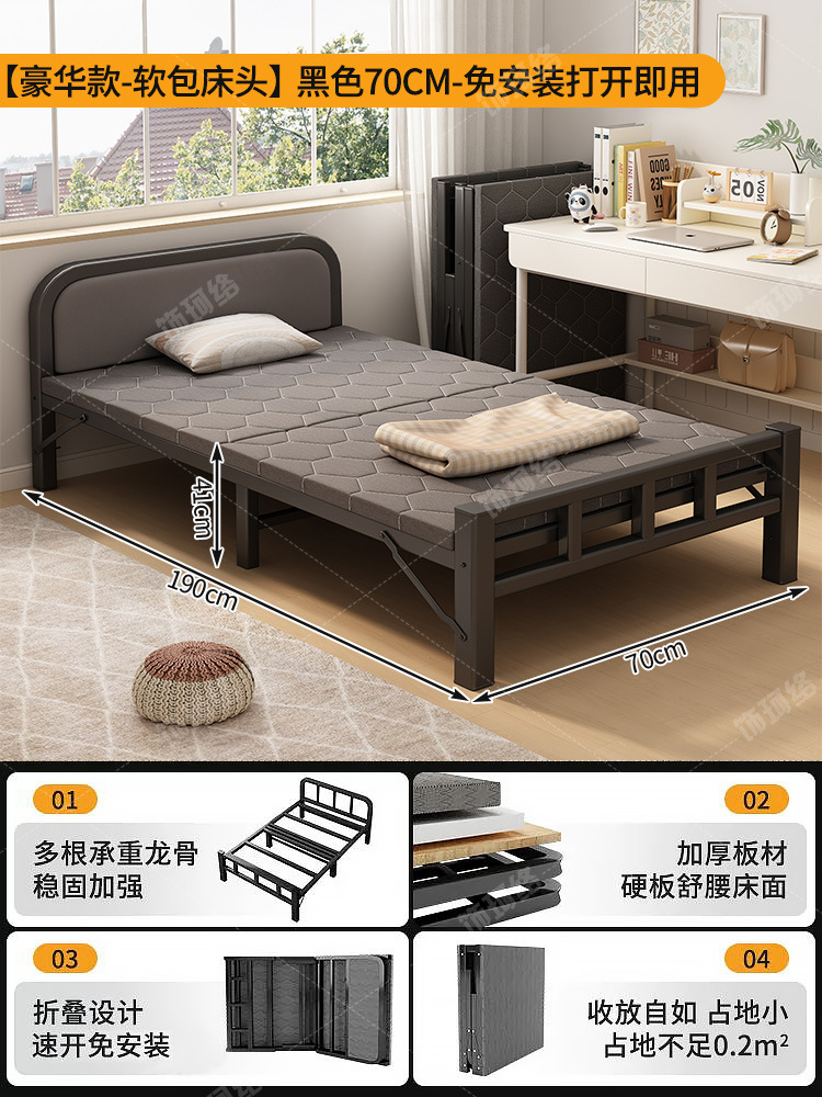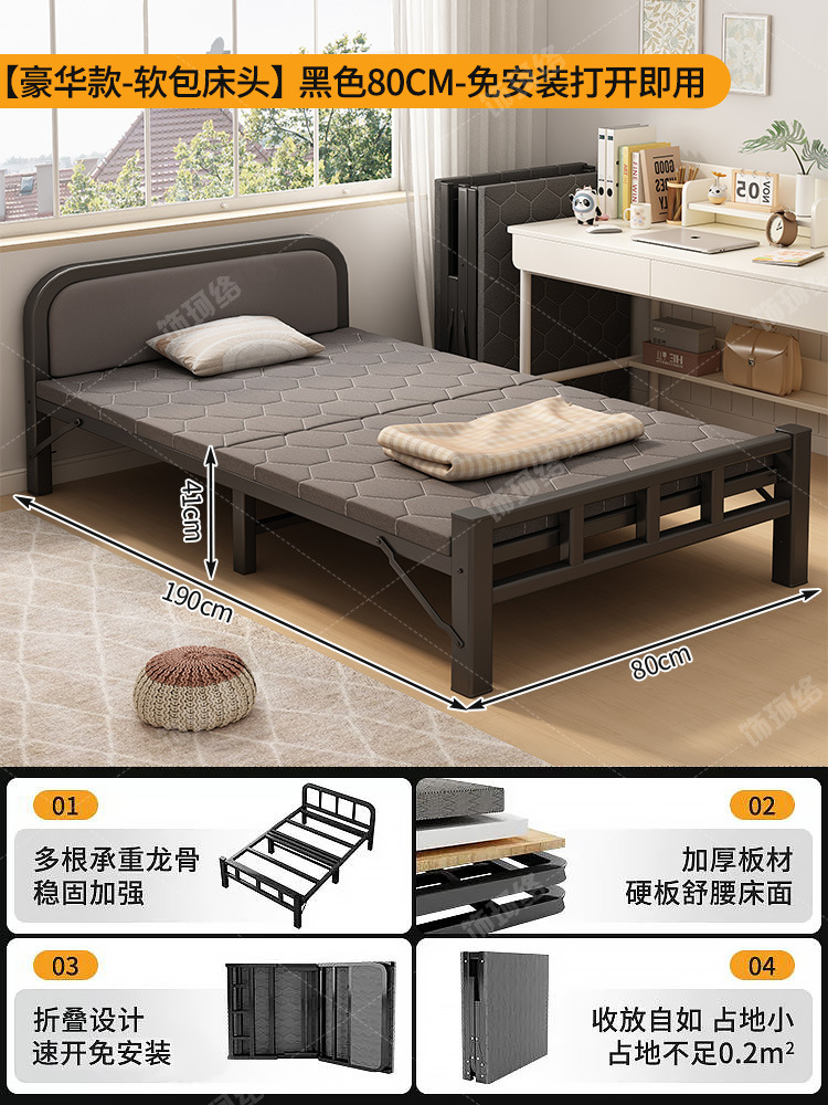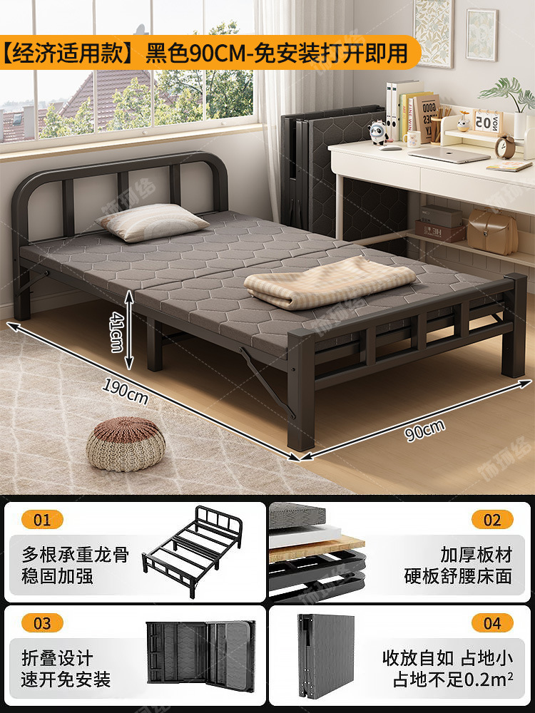 접이식 침대 싱글 침대 가정용 간이 성인 낮잠 침대 1.2m 임대 기숙사 단단한 더블 철제 침대