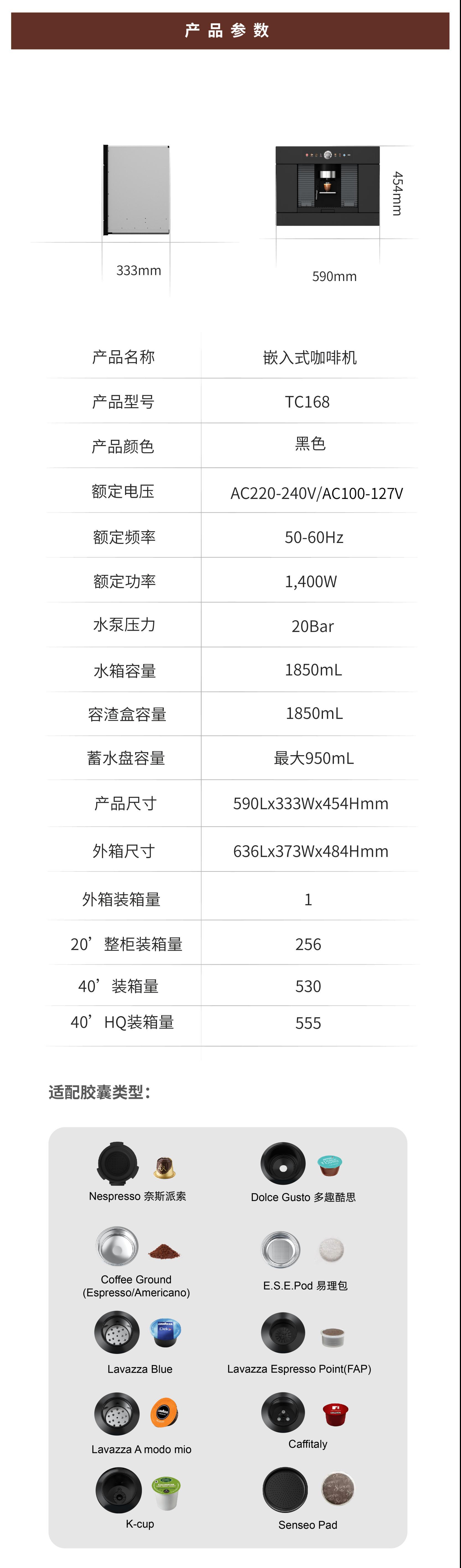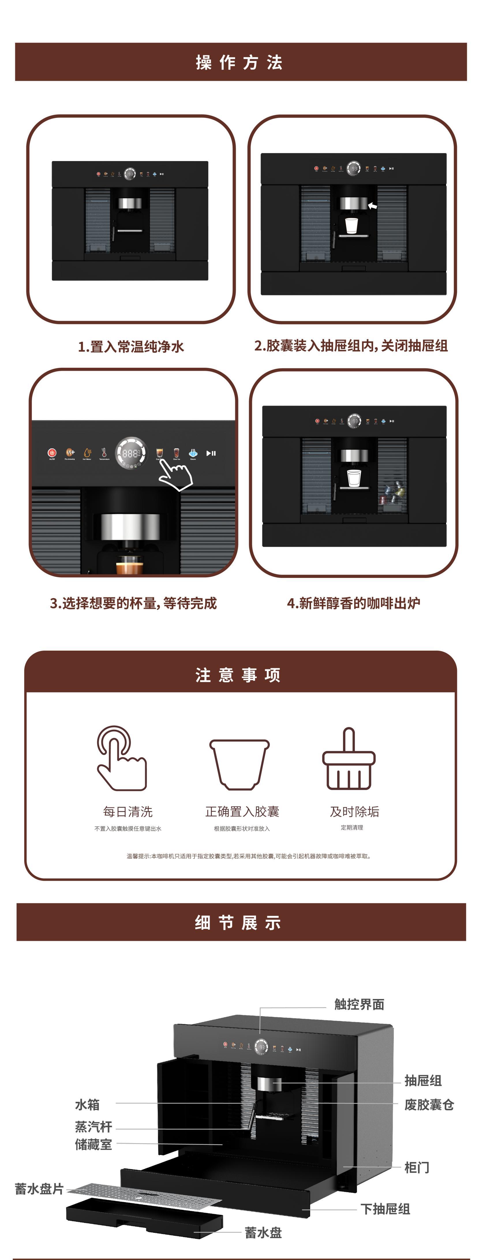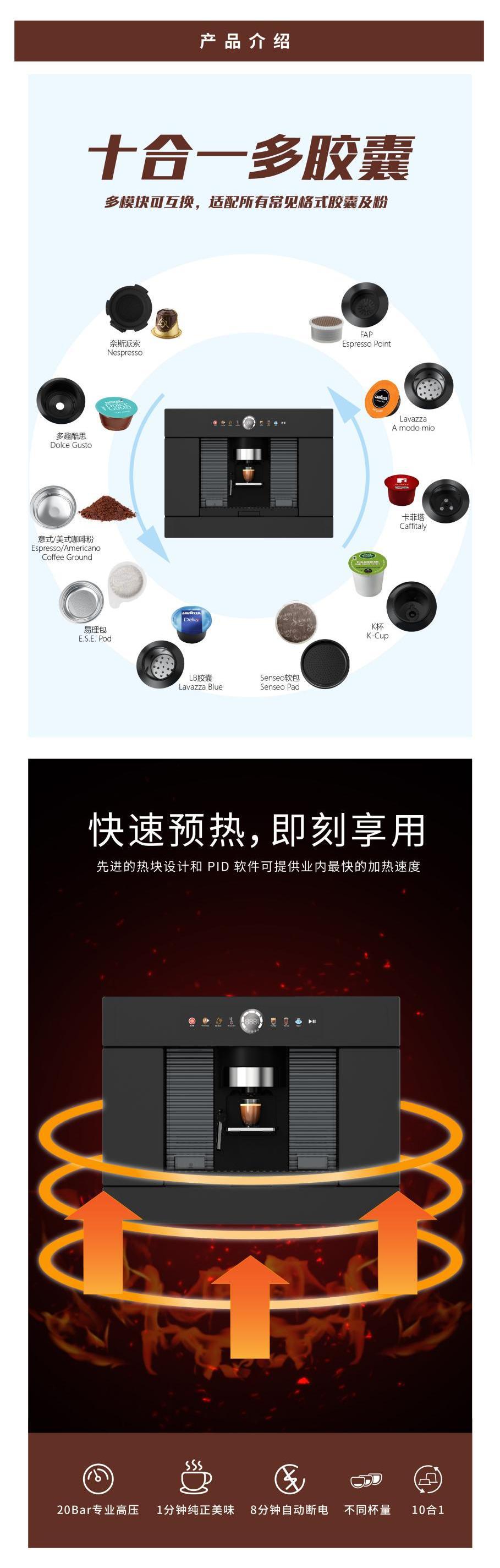 厨房家用意式浓缩多功能十合一高压萃取嵌入式多胶囊咖啡机