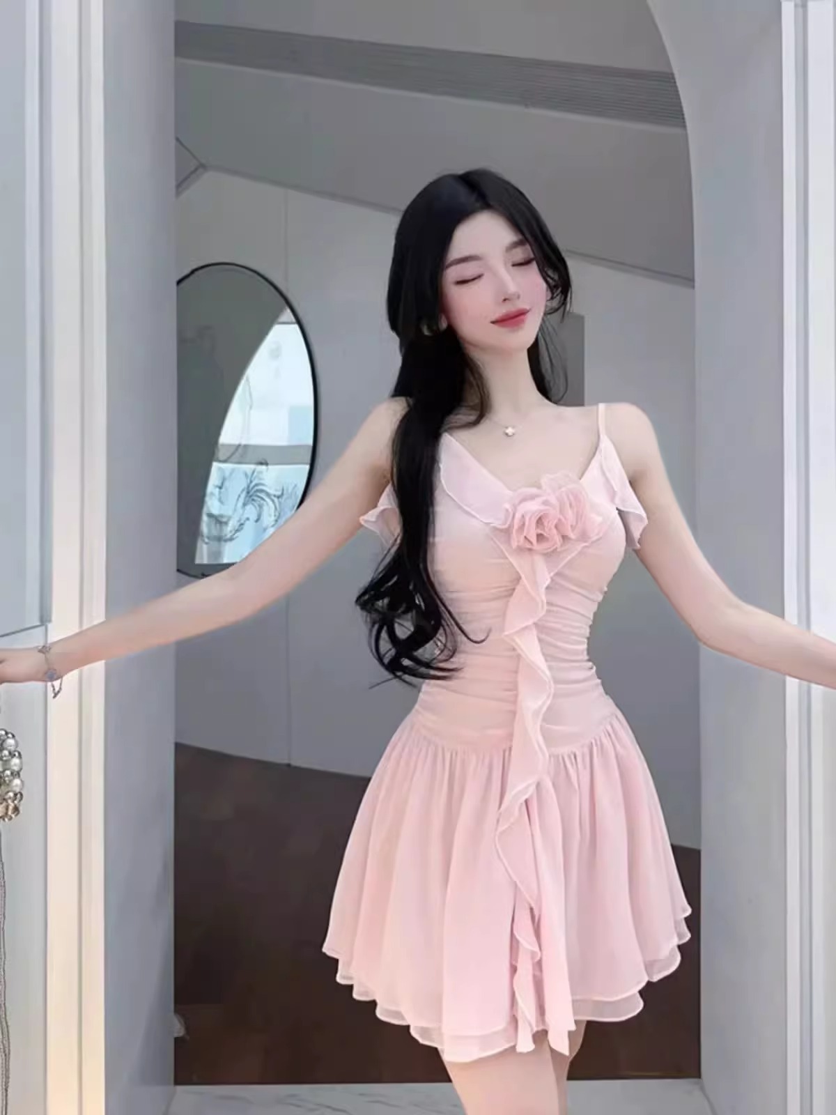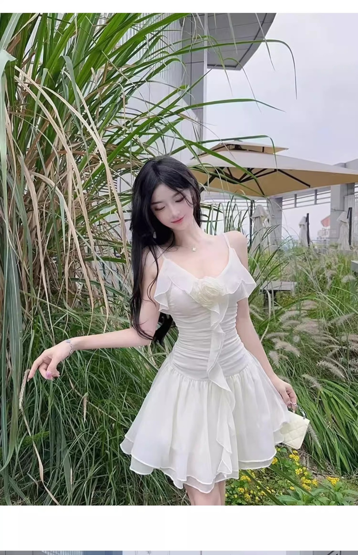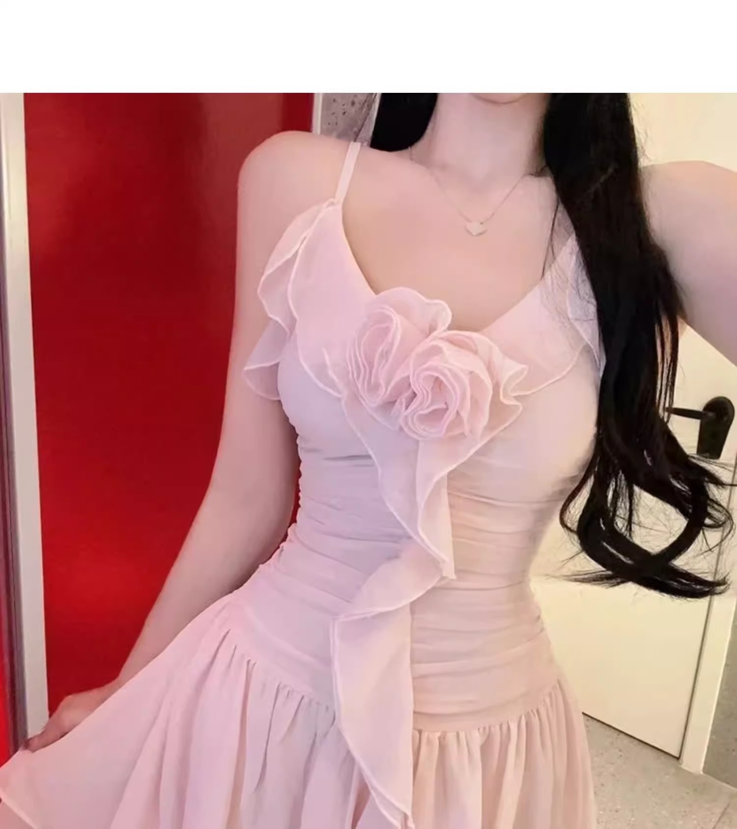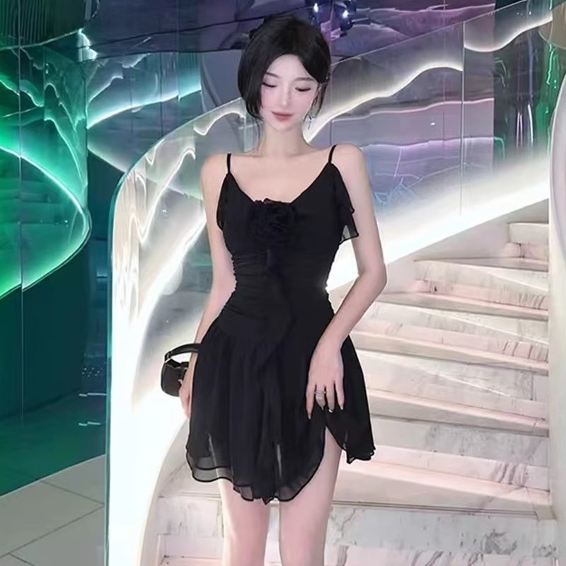 2025 여성용 수영복 원피스 서스펜더 스커트 스타일 러플 솔리드 컬러 달콤한 보수적 슬리밍 슬림 핫 스프링 수영복스토어 가기