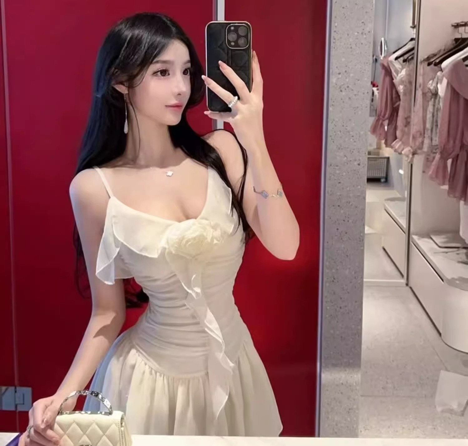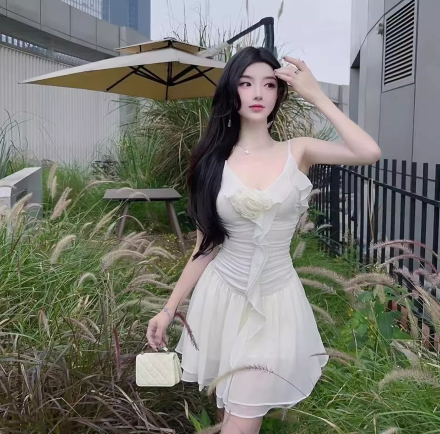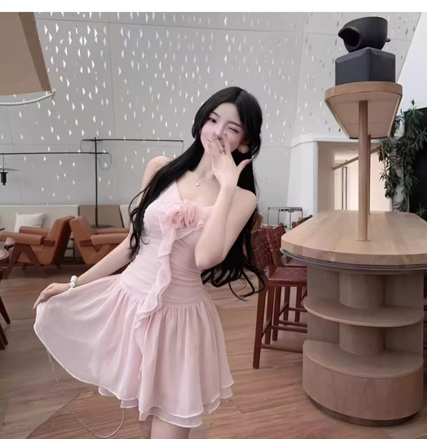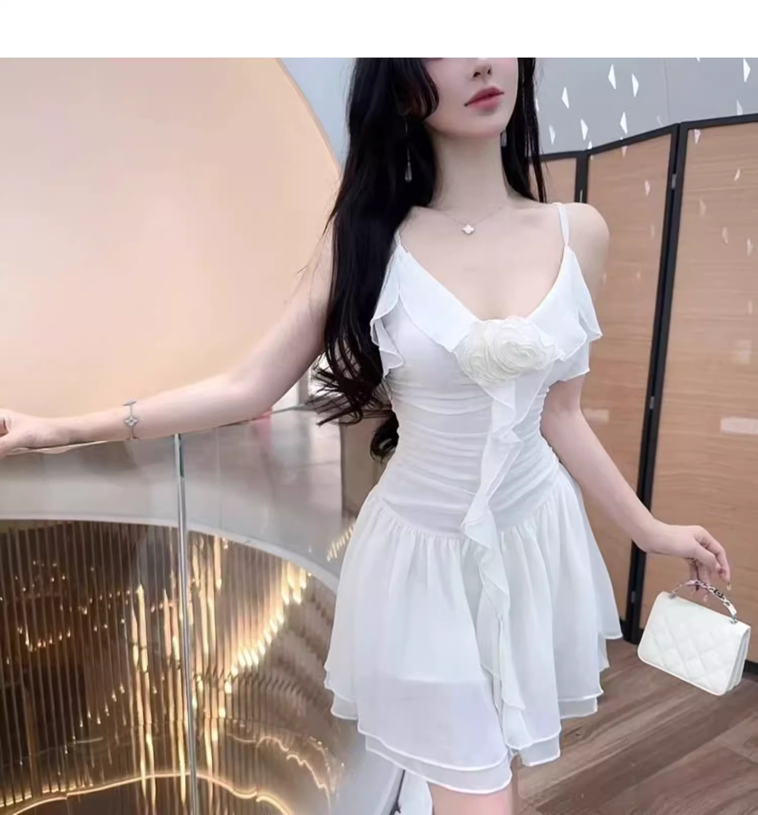 2025 여성용 수영복 원피스 서스펜더 스커트 스타일 러플 솔리드 컬러 달콤한 보수적 슬리밍 슬림 핫 스프링 수영복스토어 가기